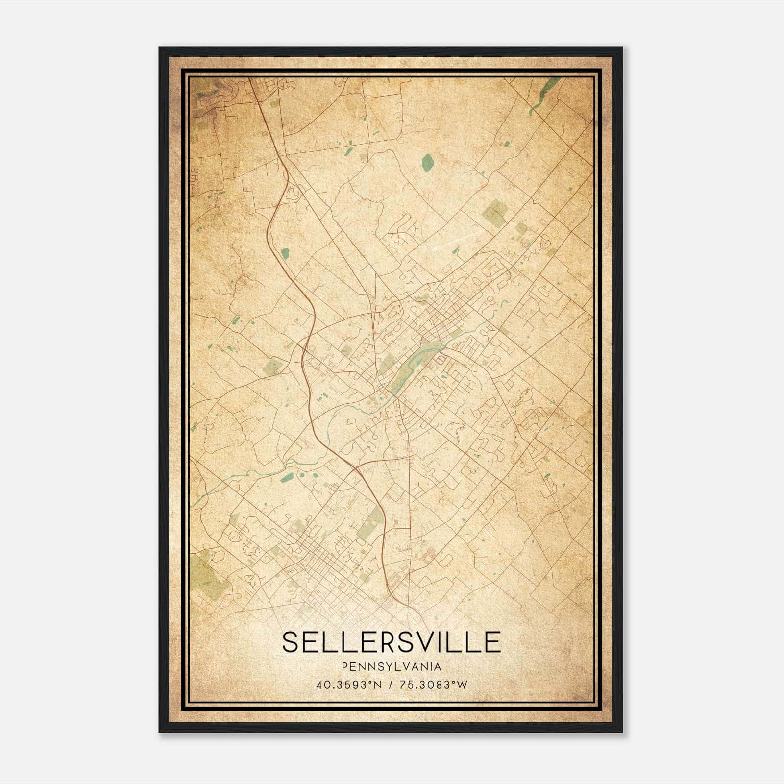 Vintage Cassville Pennsylvania Map Poster, Cassville PA City Road Wall Art Print