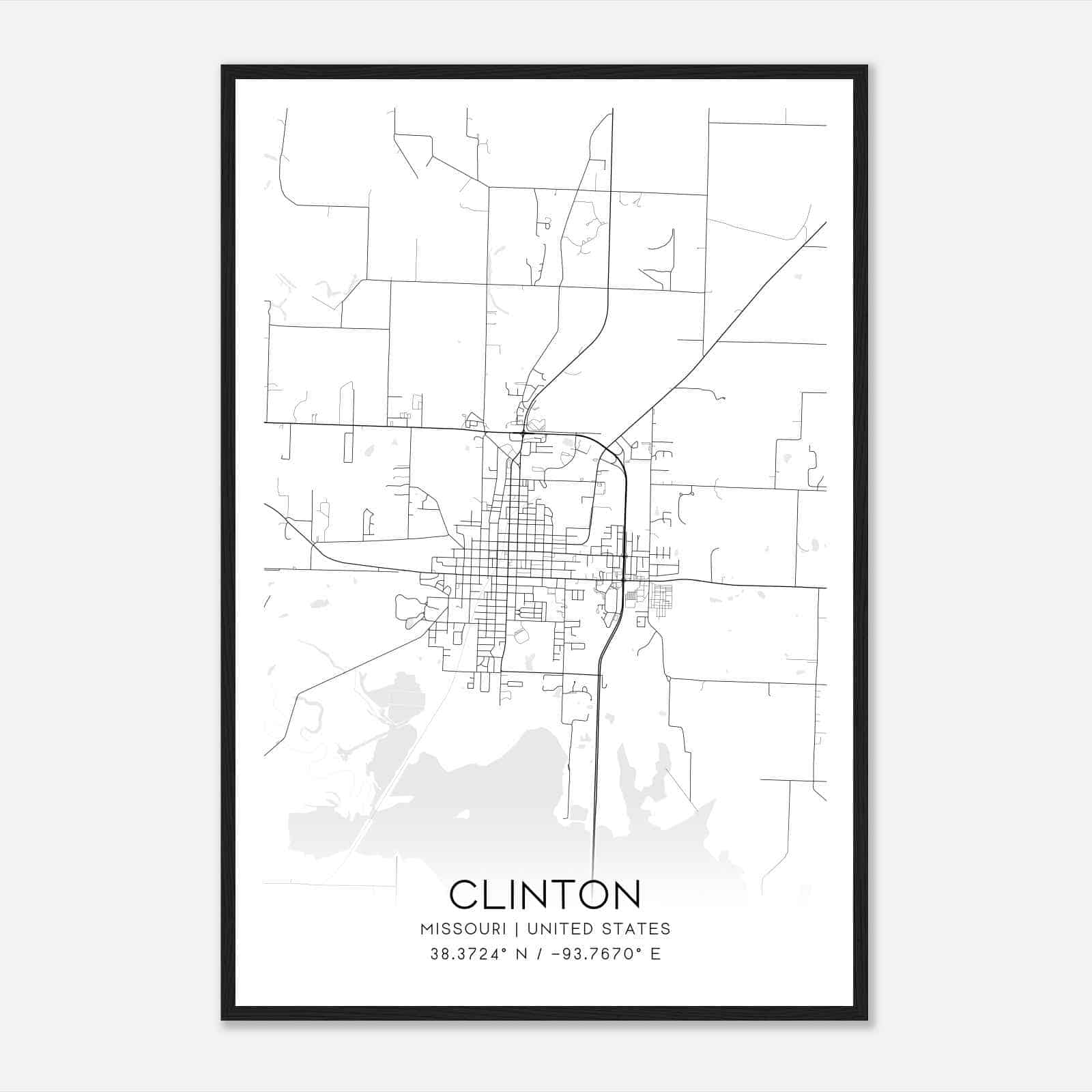 Vintage Clinton Missouri Map Poster, Modern Home Decor Wall Art Print