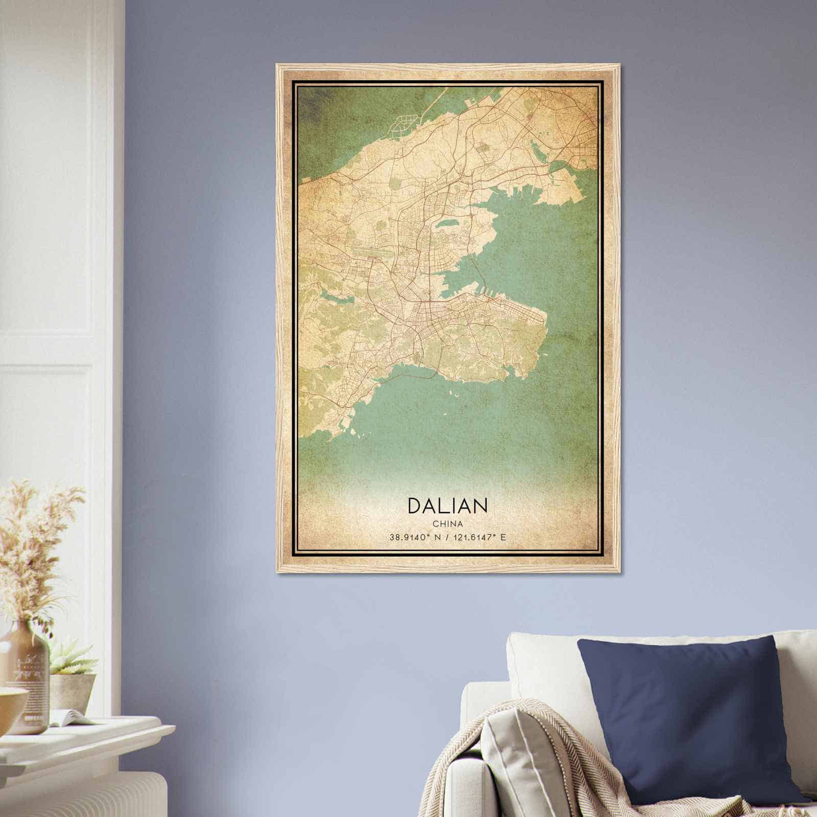 Get this Vintage Dalian Map Poster today and add a unique touch to your living space!