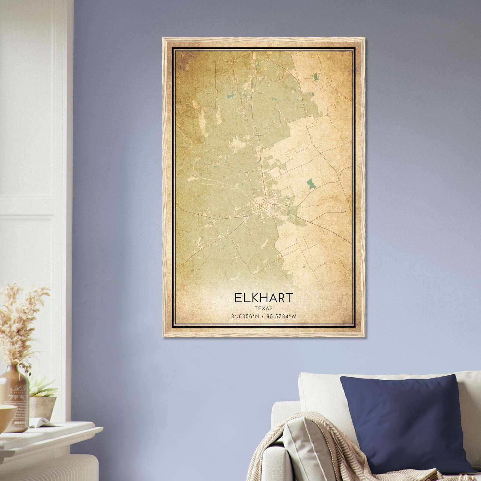 Vintage Elkhart Texas Map Poster, Elkhart TX City Road Wall Art Print