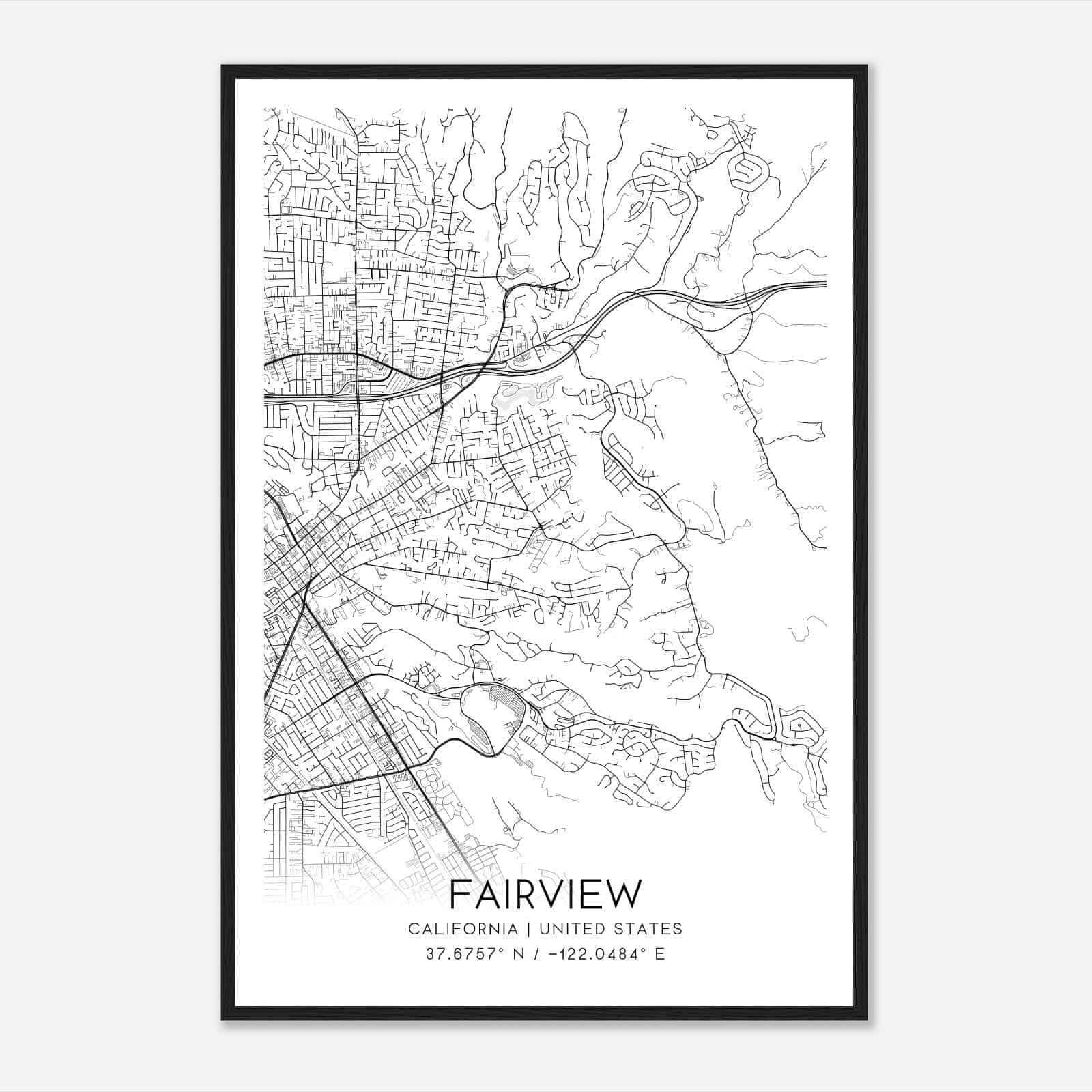 Vintage Fairview California Map Poster, Modern Home Decor Wall Art Print