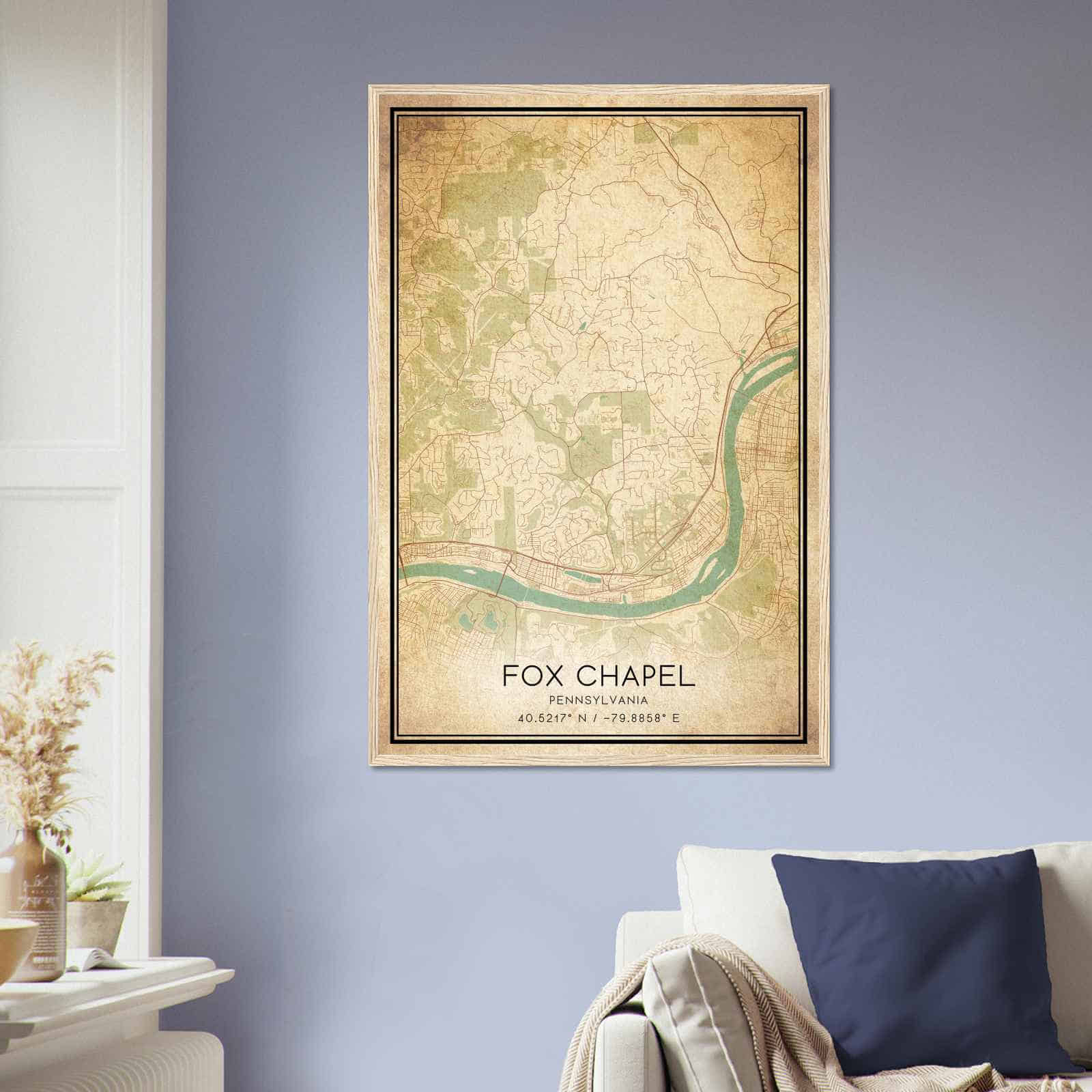Get this Vintage Fox Chapel Map Poster today and add a unique touch to your living space!