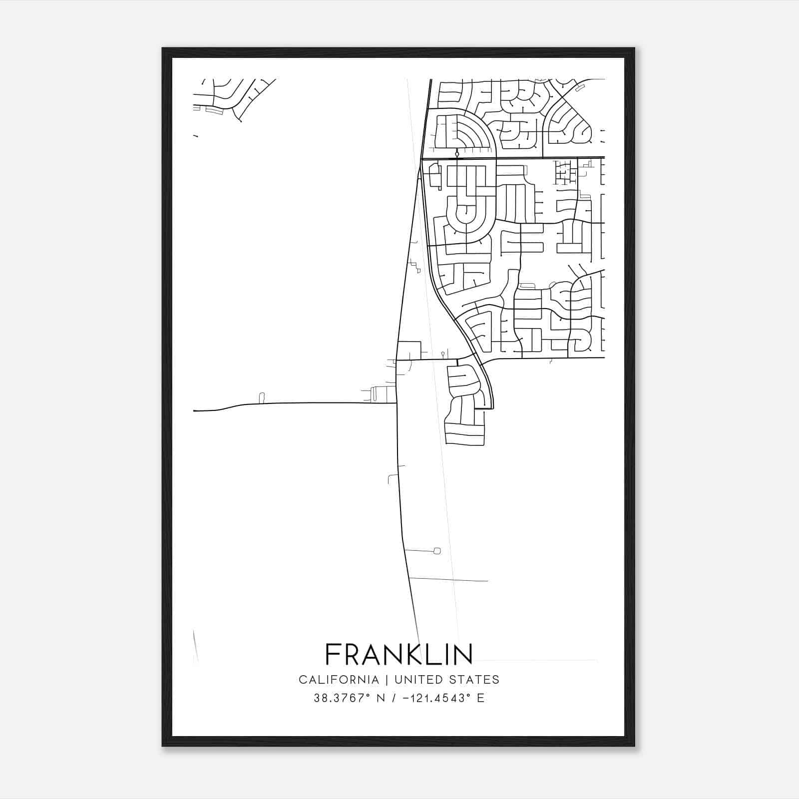 Vintage Franklin California Map Poster, Modern Home Decor Wall Art Print