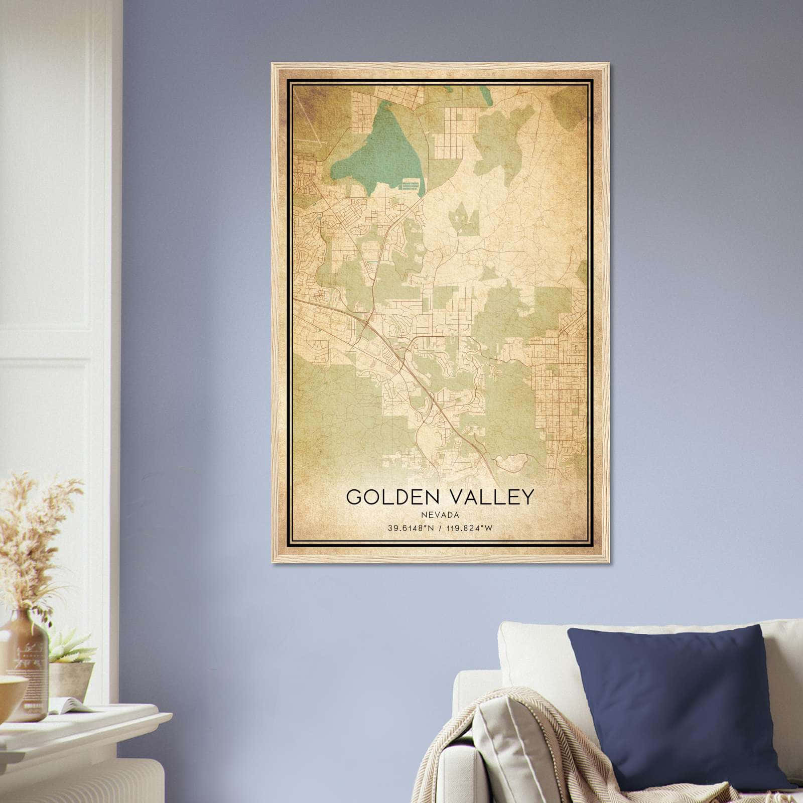Vintage Golden Valley Nevada Map Poster, Golden Valley NV City Road Wall Art Print