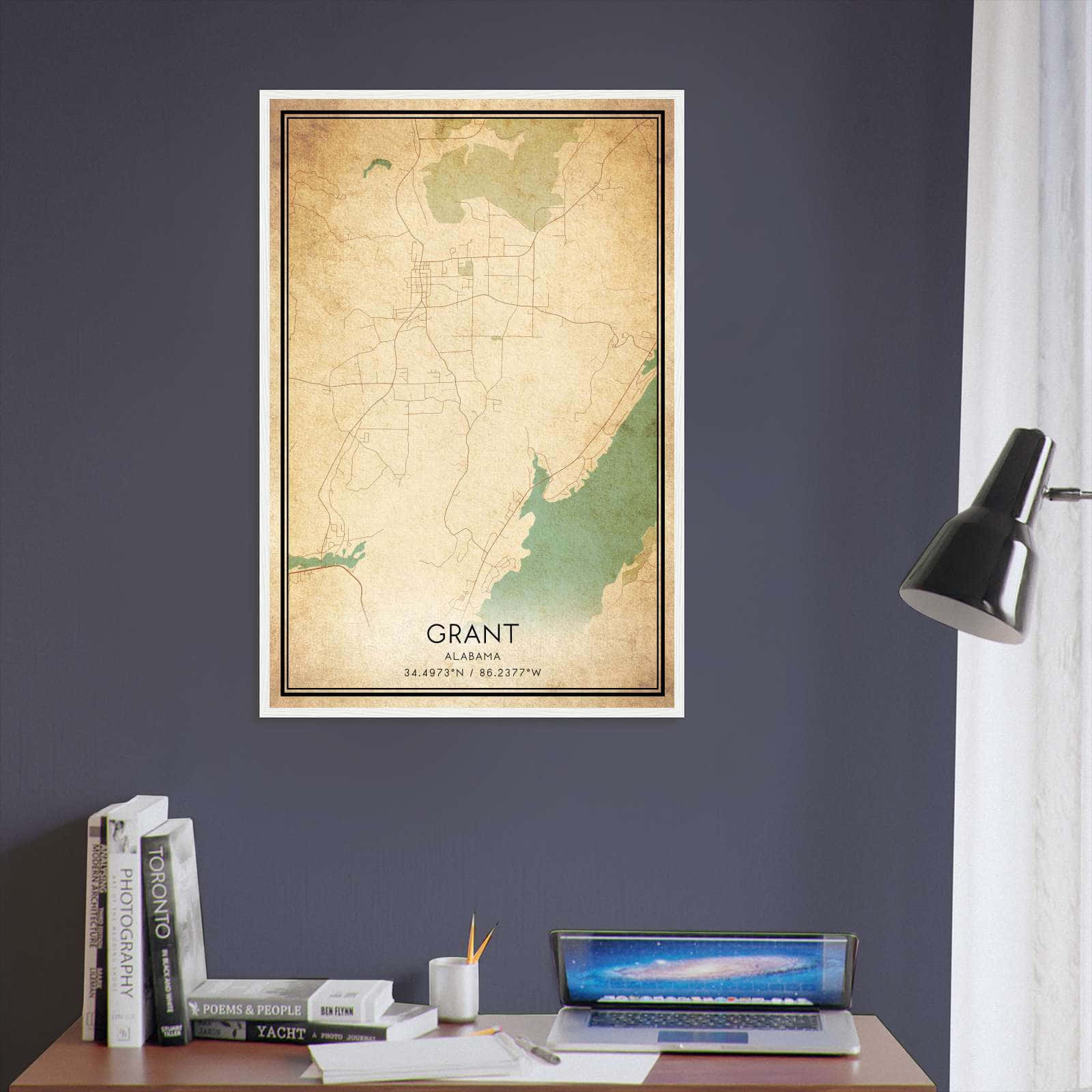 Vintage Grant Alabama Map Poster, Grant AL City Road Wall Art Print