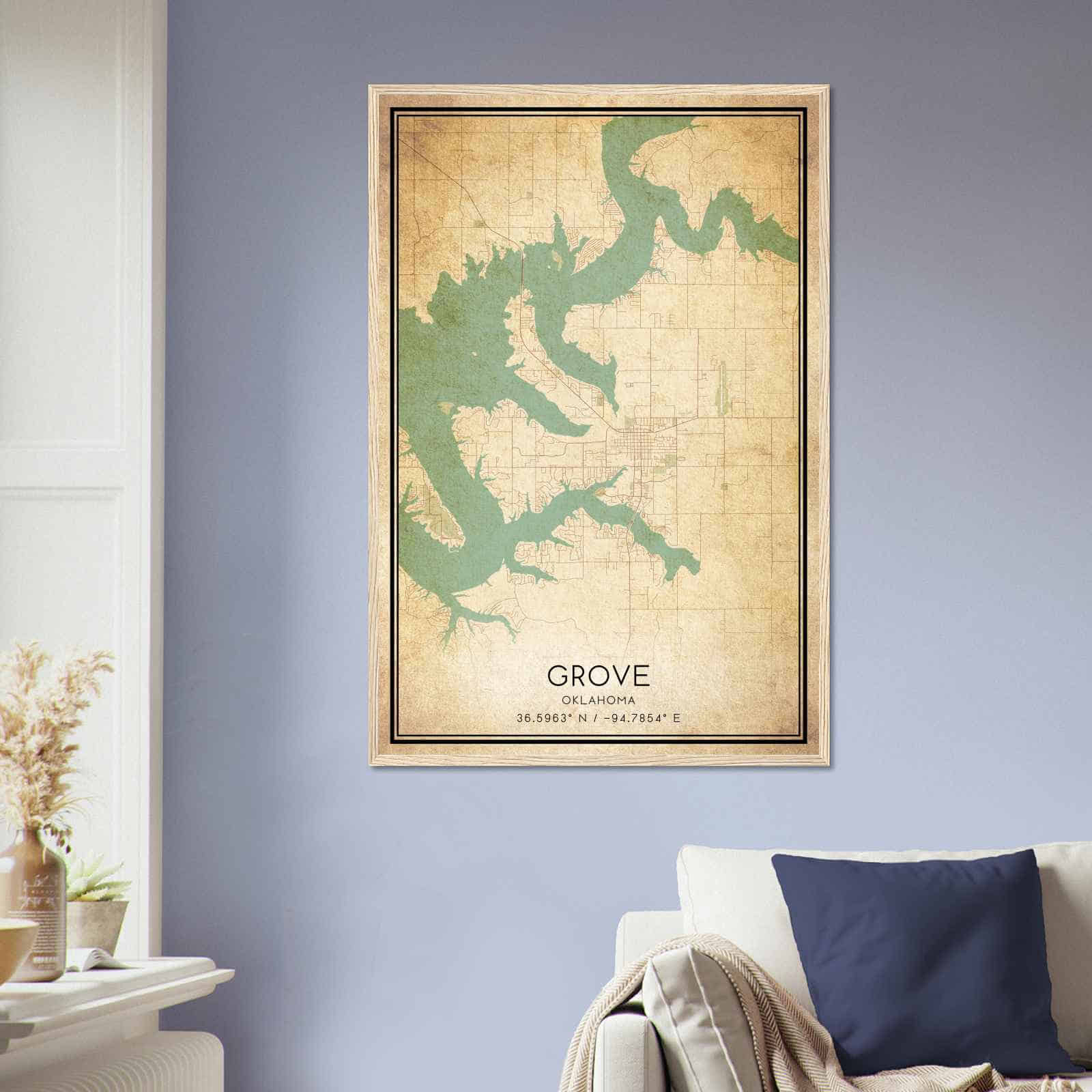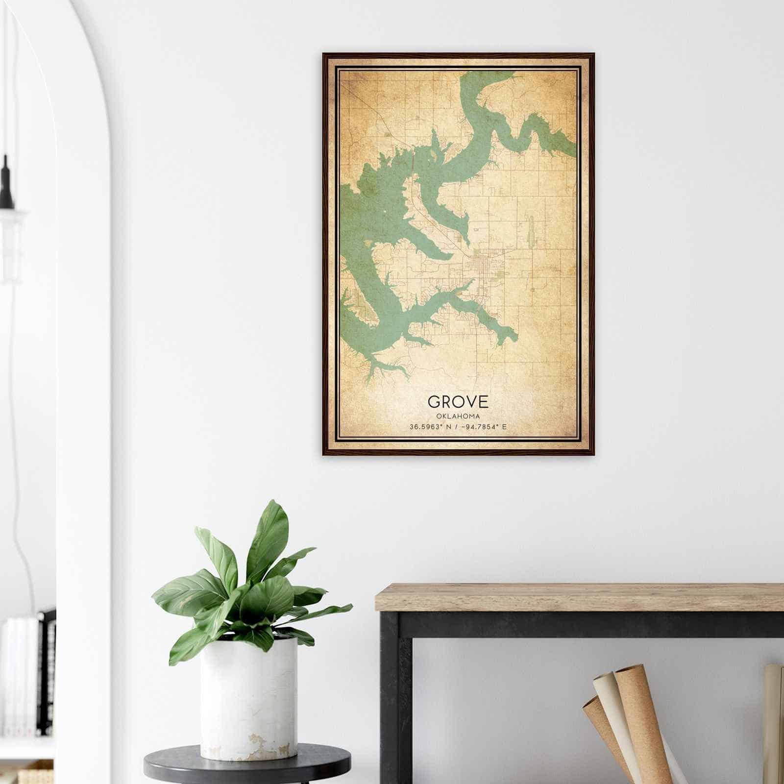 Get this Vintage Grove Map Poster today and add a unique touch to your living space!
