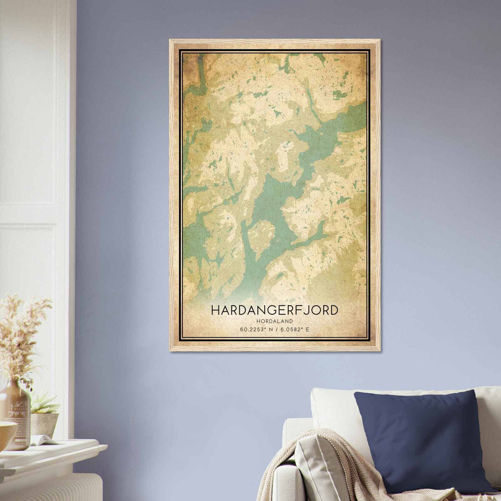 Get this Vintage Hardangerfjord Map Poster today and add a unique touch to your living space!