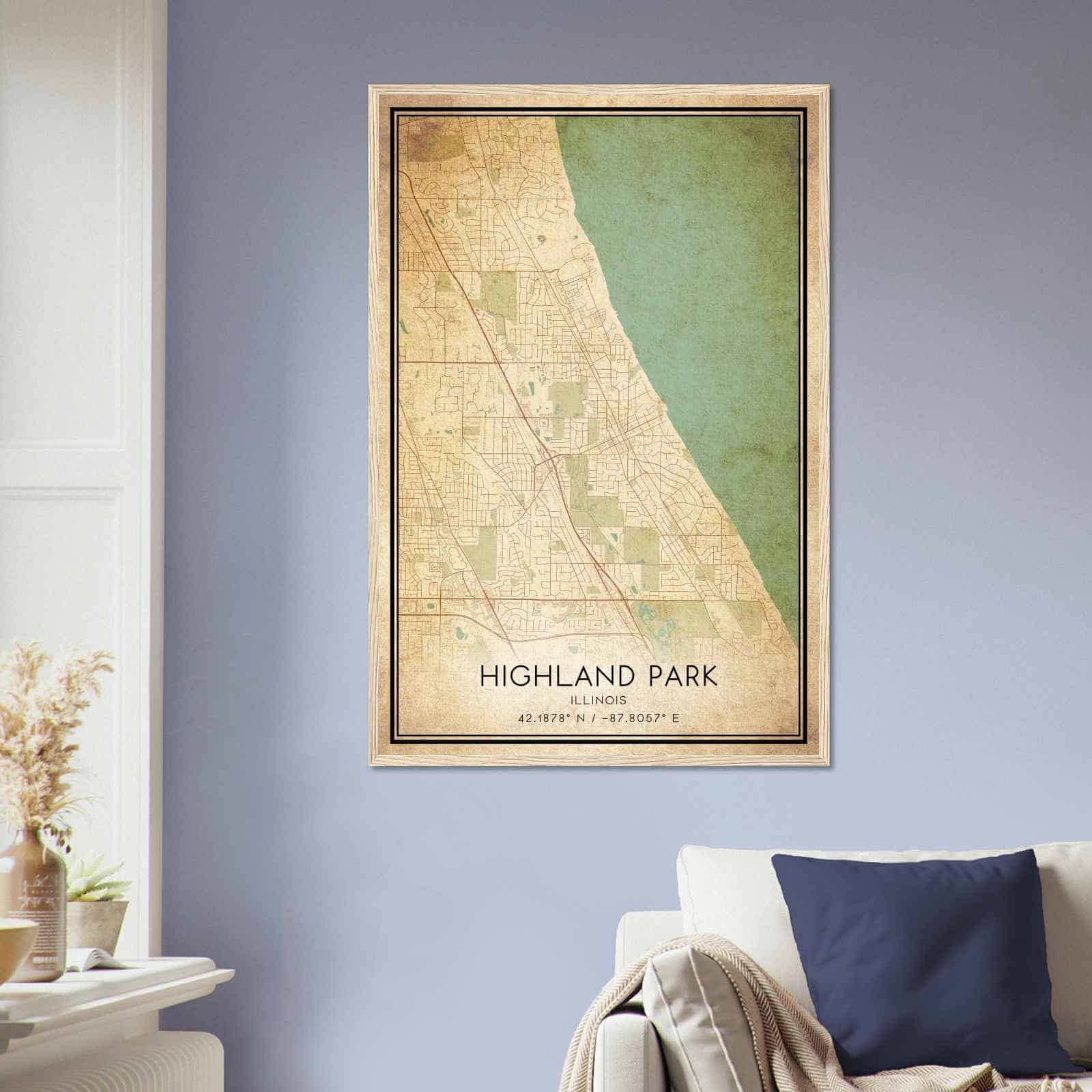 Vintage Highland Park Illinois Map Poster, Modern Home Decor Wall Art Print