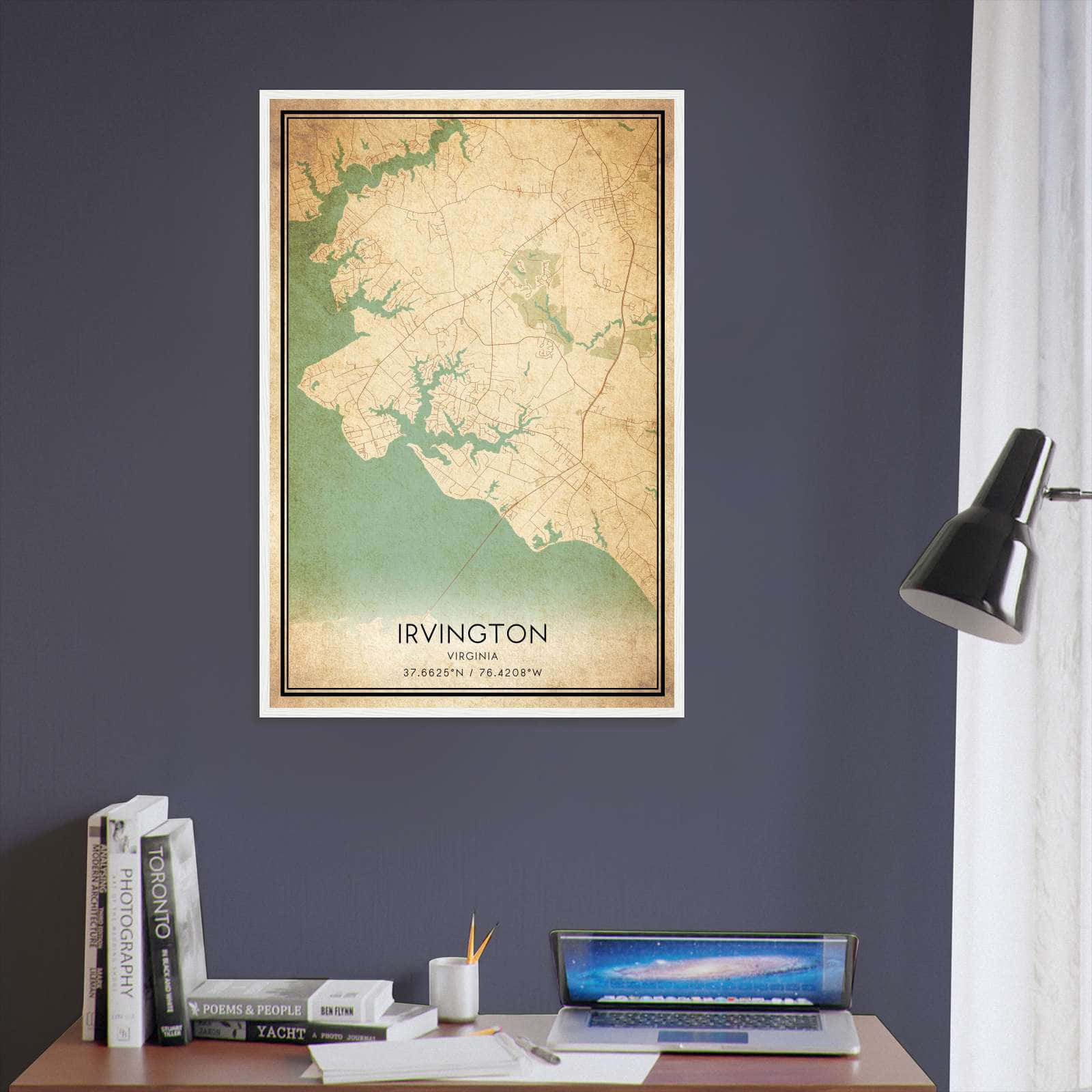 Vintage Irvington Virginia Map Poster, Irvington VA City Road Wall Art Print