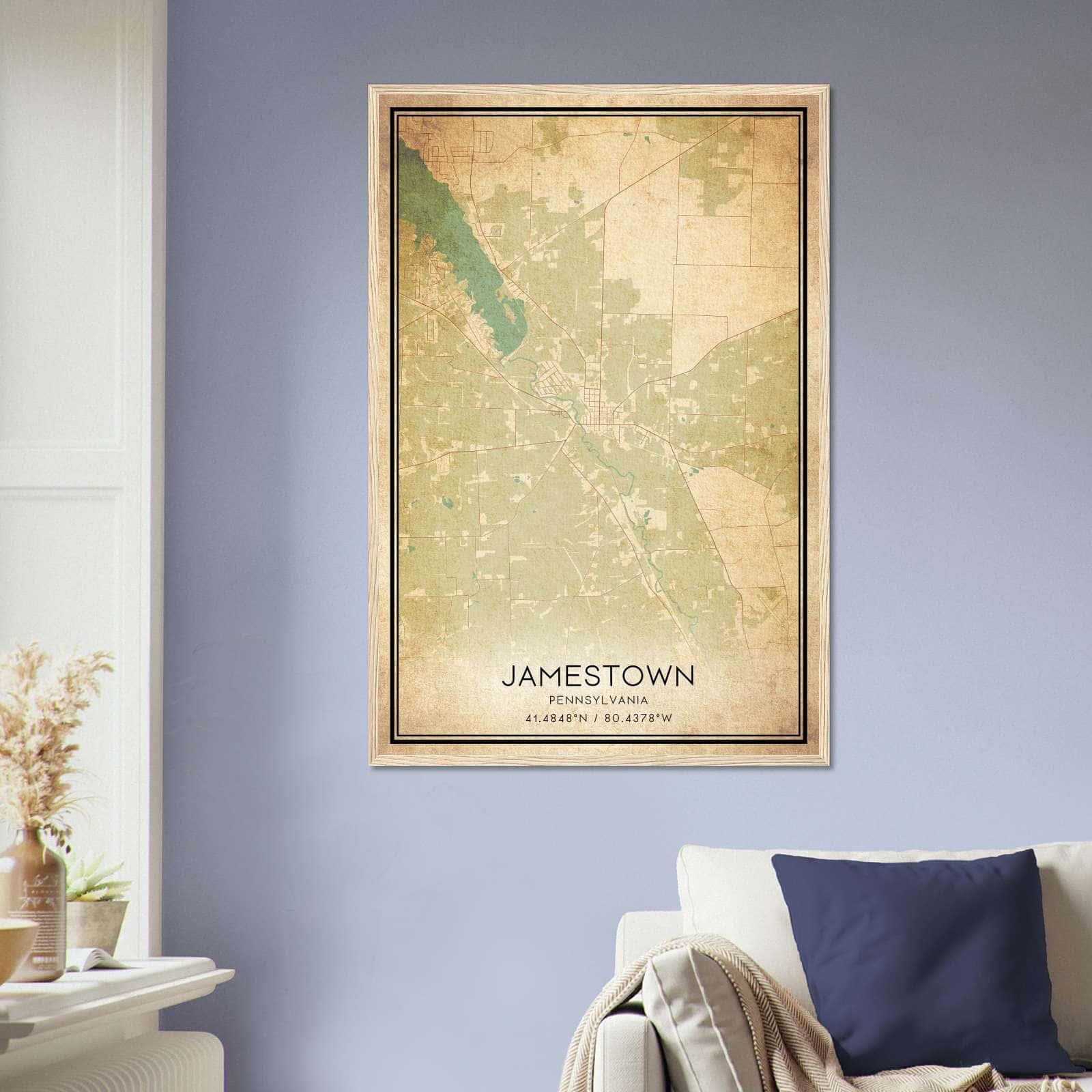Vintage Jamestown Pennsylvania Map Poster, Jamestown PA City Road Wall Art Print
