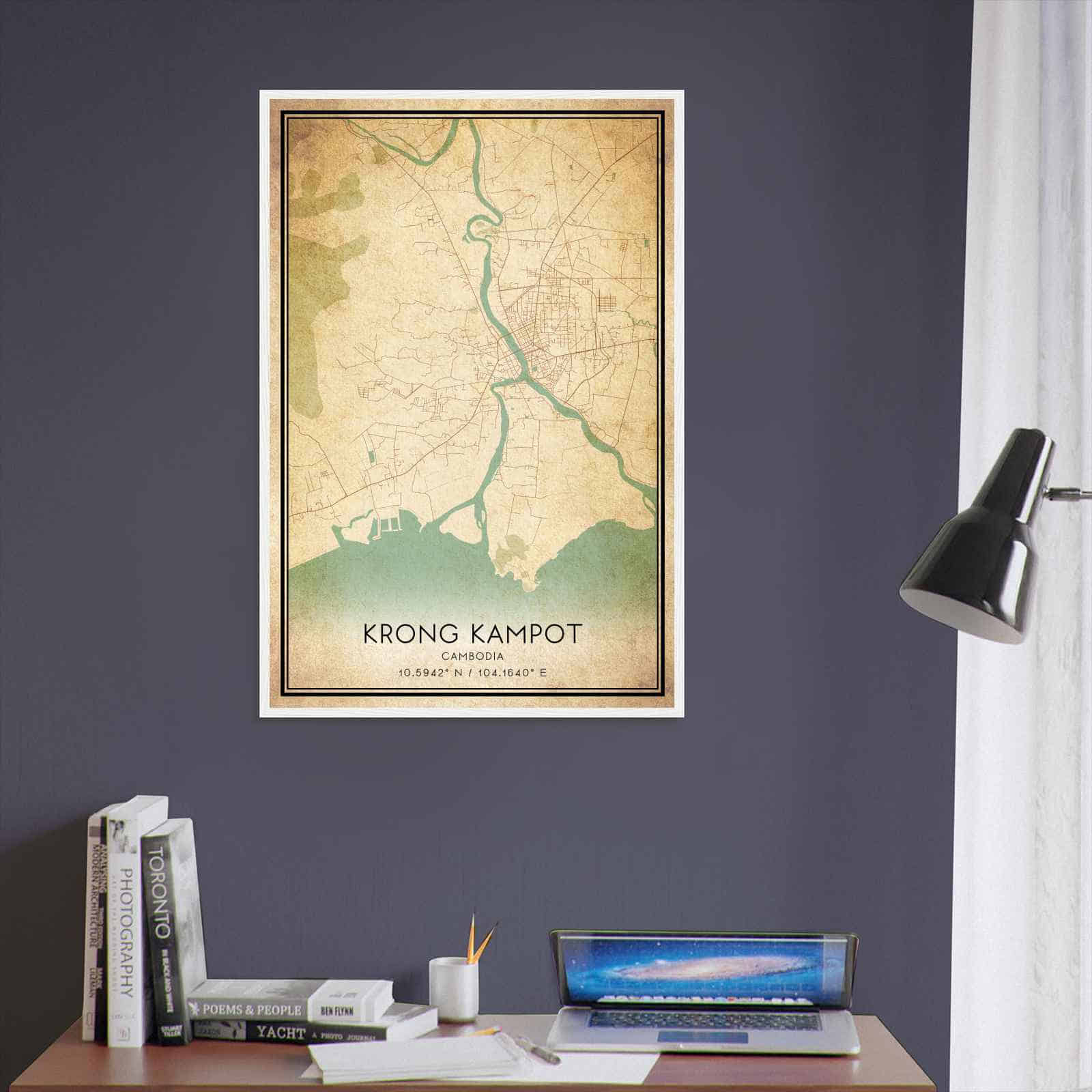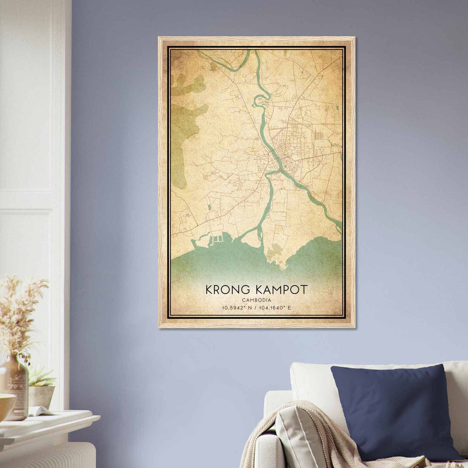 Get this Vintage Krong Kampot Map Poster today and add a unique touch to your living space!
