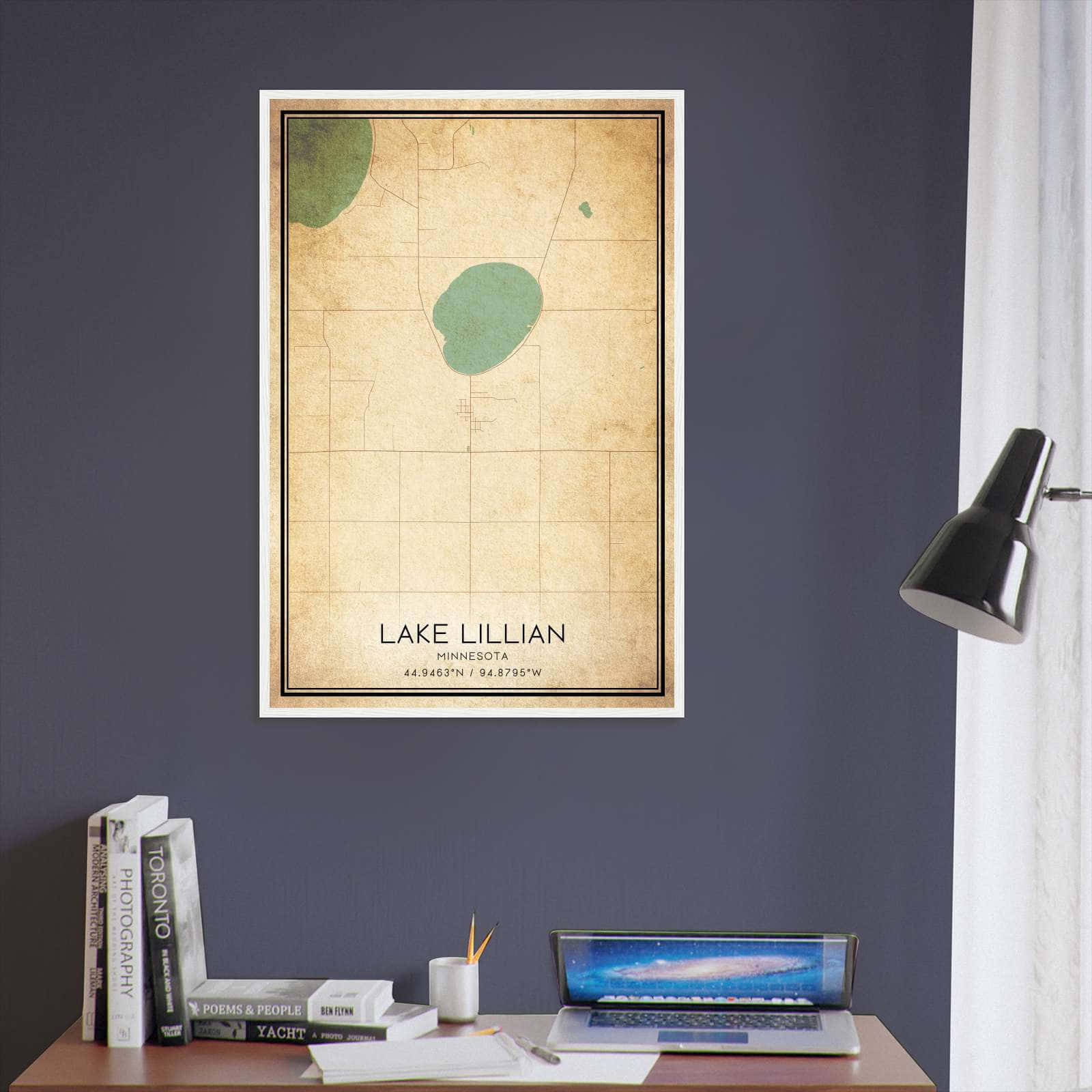 Get this Vintage Lake Lillian Map Poster today and add a unique touch to your living space!