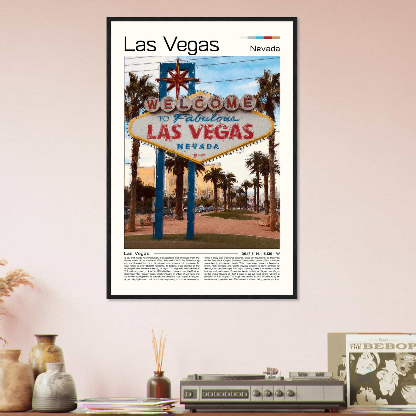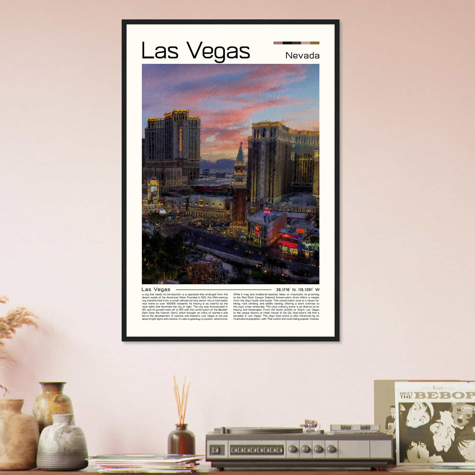 This vintage wall art print is a perfect gift for anyone who loves Las Vegas or is a fan of vintage home decor. Its intricate details and vibrant colors make it an eye-catching wall art piece that will elevate the aesthetic of any room in your home. Hang it in your living room, bedroom, or office for a touch of elegance and sophistication.