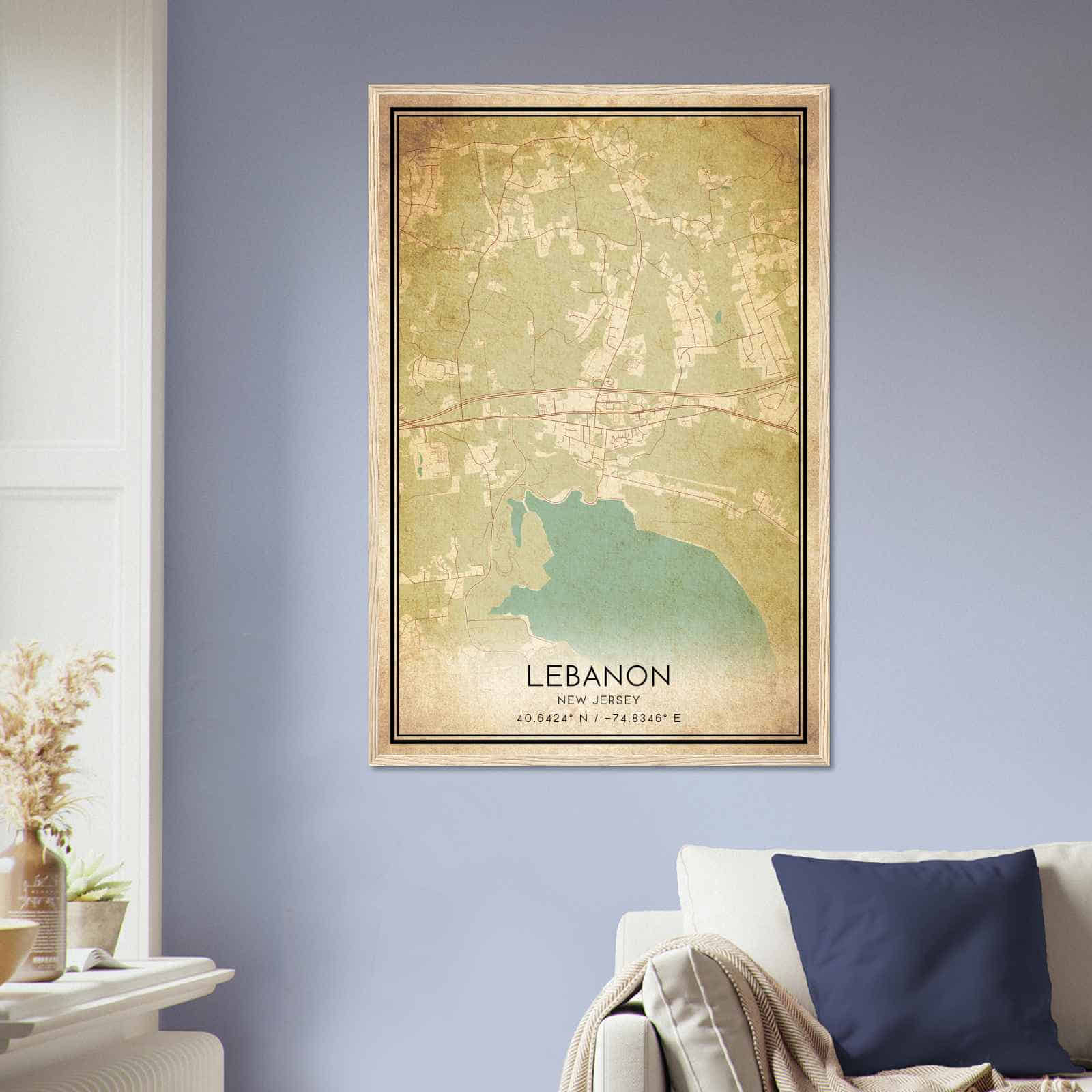 Vintage Lebanon New Jersey Map Poster, Modern Home Decor Wall Art Print