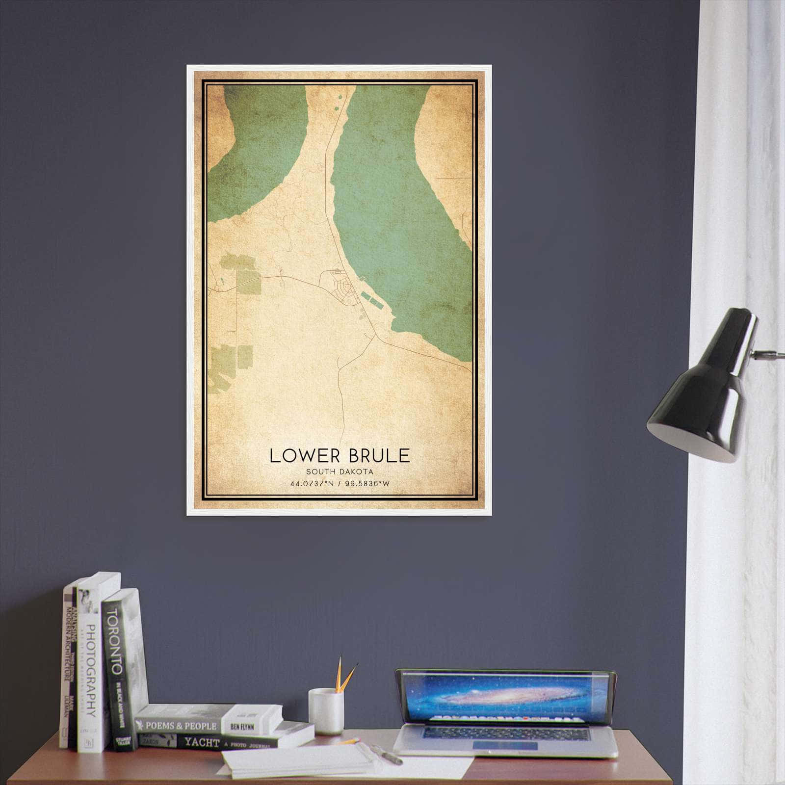 Get this Vintage Lower Brule Map Poster today and add a unique touch to your living space!