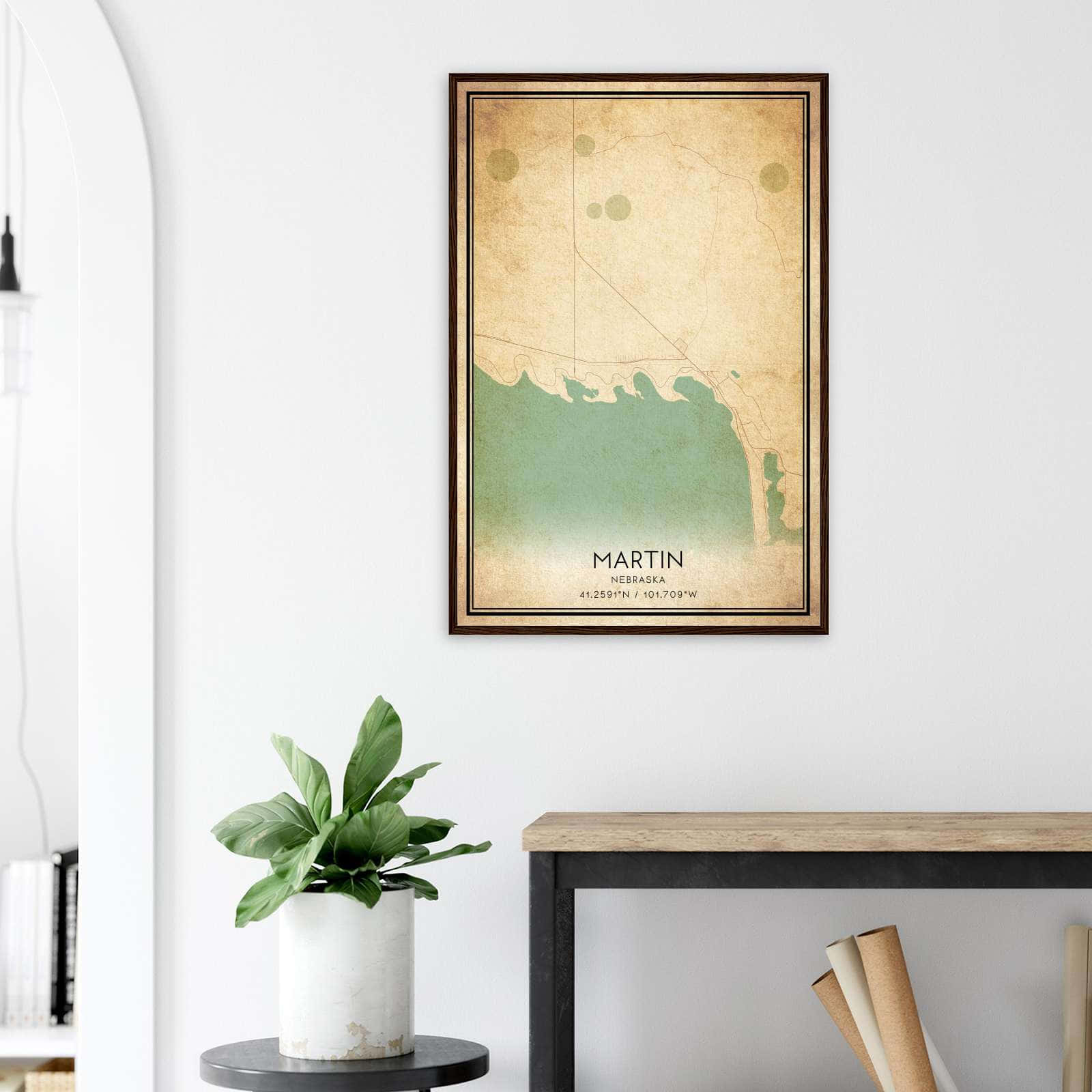 Vintage Martin Nebraska Map Poster, Martin NE City Road Wall Art Print
