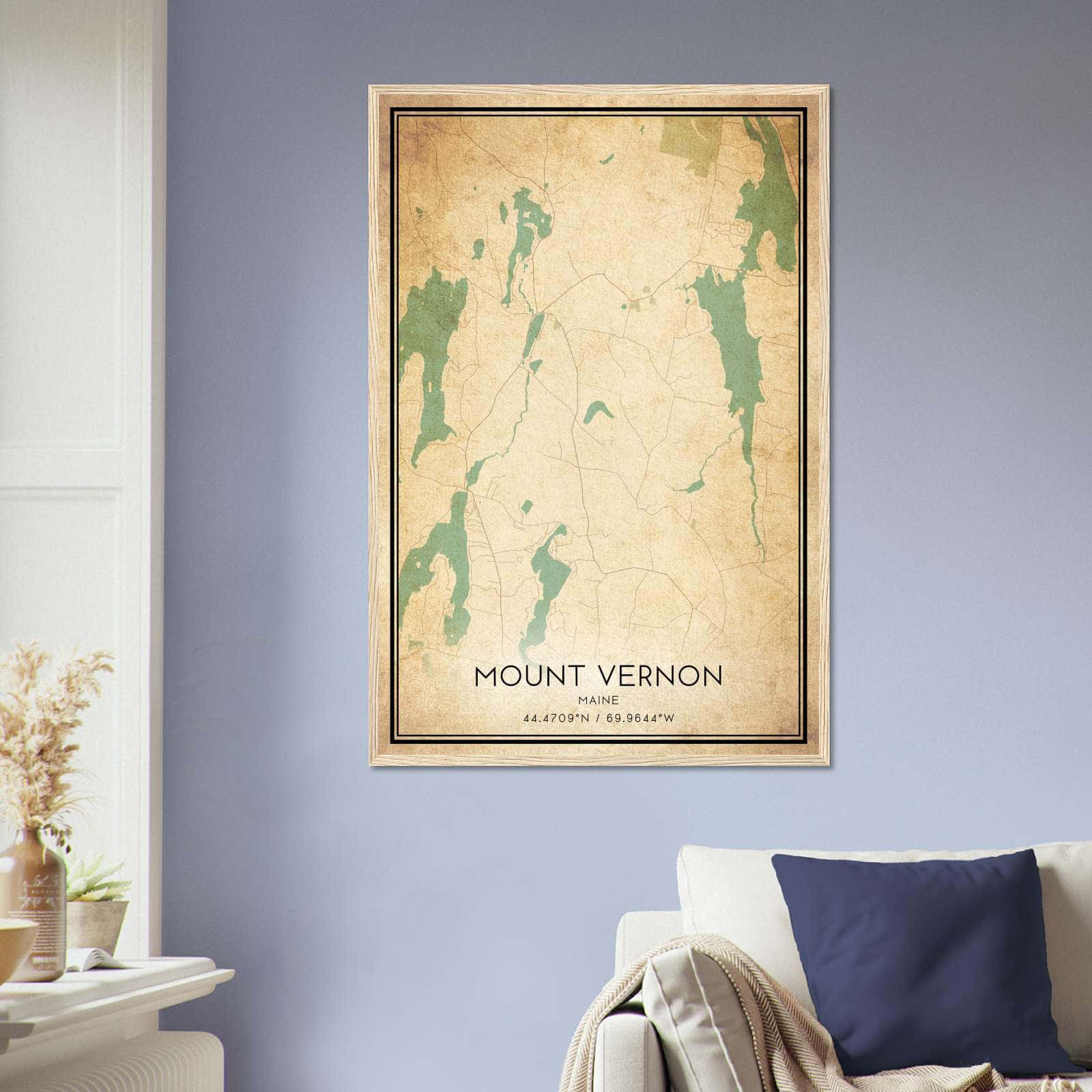 Vintage Mount Vernon Maine Map Poster, Mount Vernon ME City Road Wall Art Print