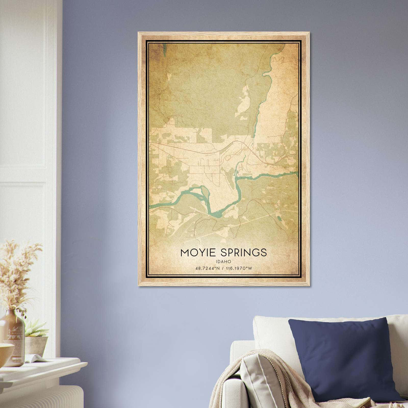 Get this Vintage Moyie Springs Map Poster today and add a unique touch to your living space!
