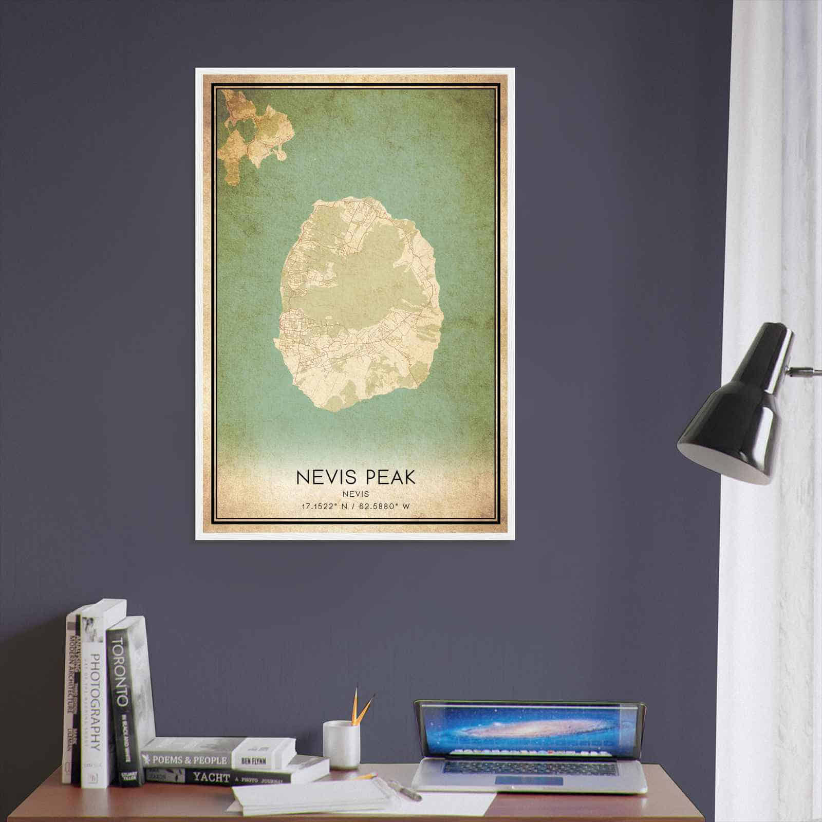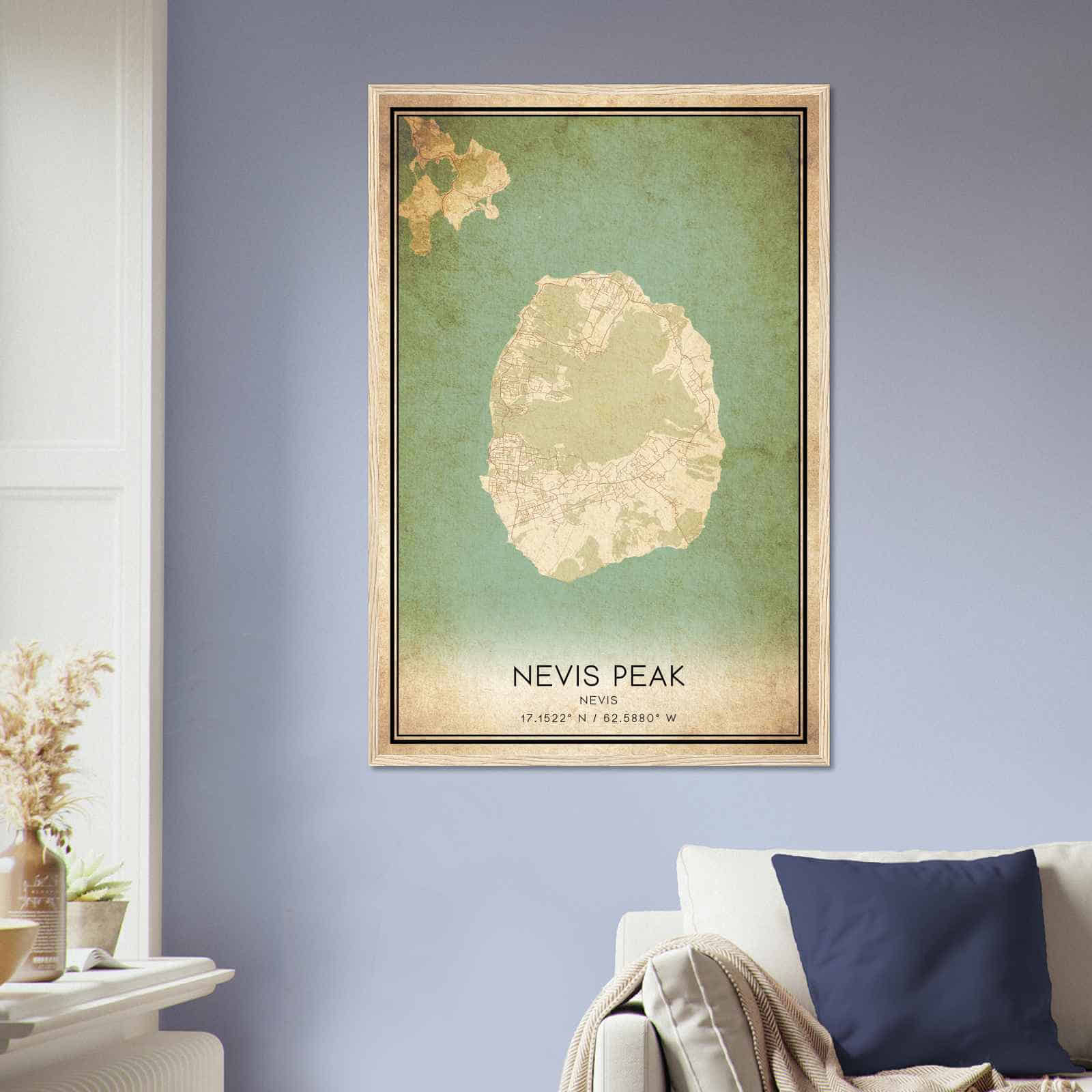 This vintage wall art print is a perfect gift for anyone who loves Nevis Peak or is a fan of vintage home decor. Its intricate details and vibrant colors make it an eye-catching wall art piece that will elevate the aesthetic of any room in your home. Hang it in your living room, bedroom, or office for a touch of elegance and sophistication.