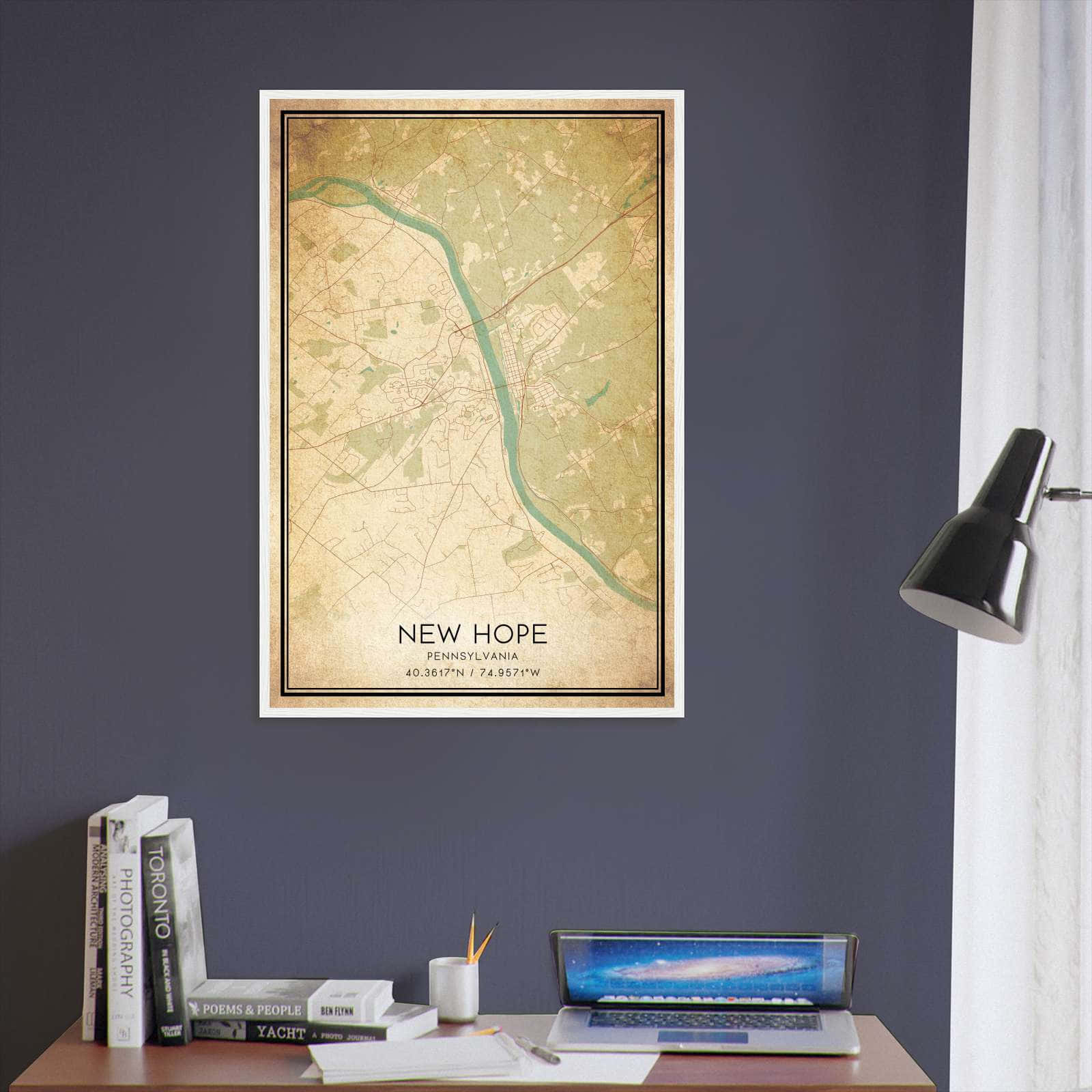 Vintage New Hope Pennsylvania Map Poster, New Hope PA City Road Wall Art Print