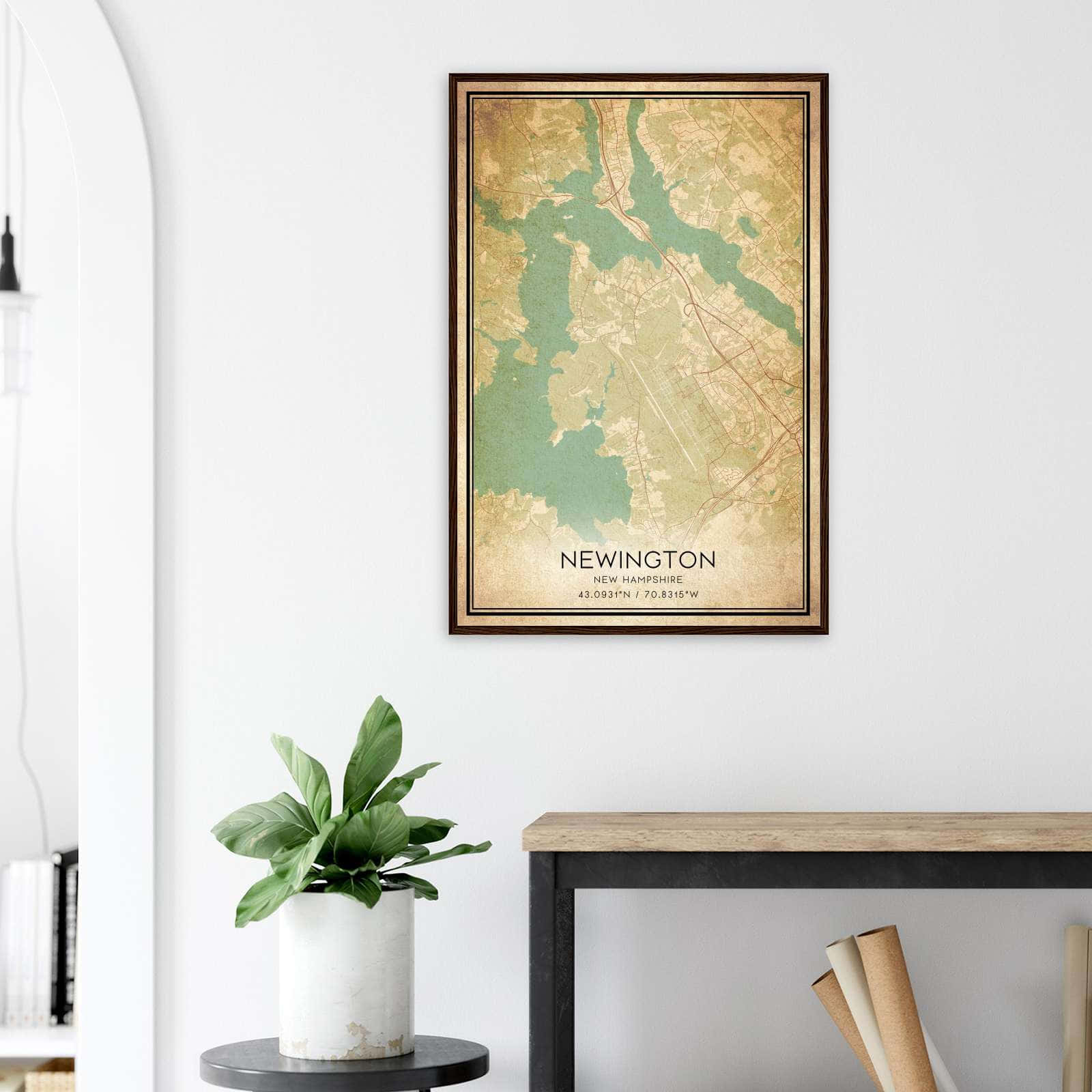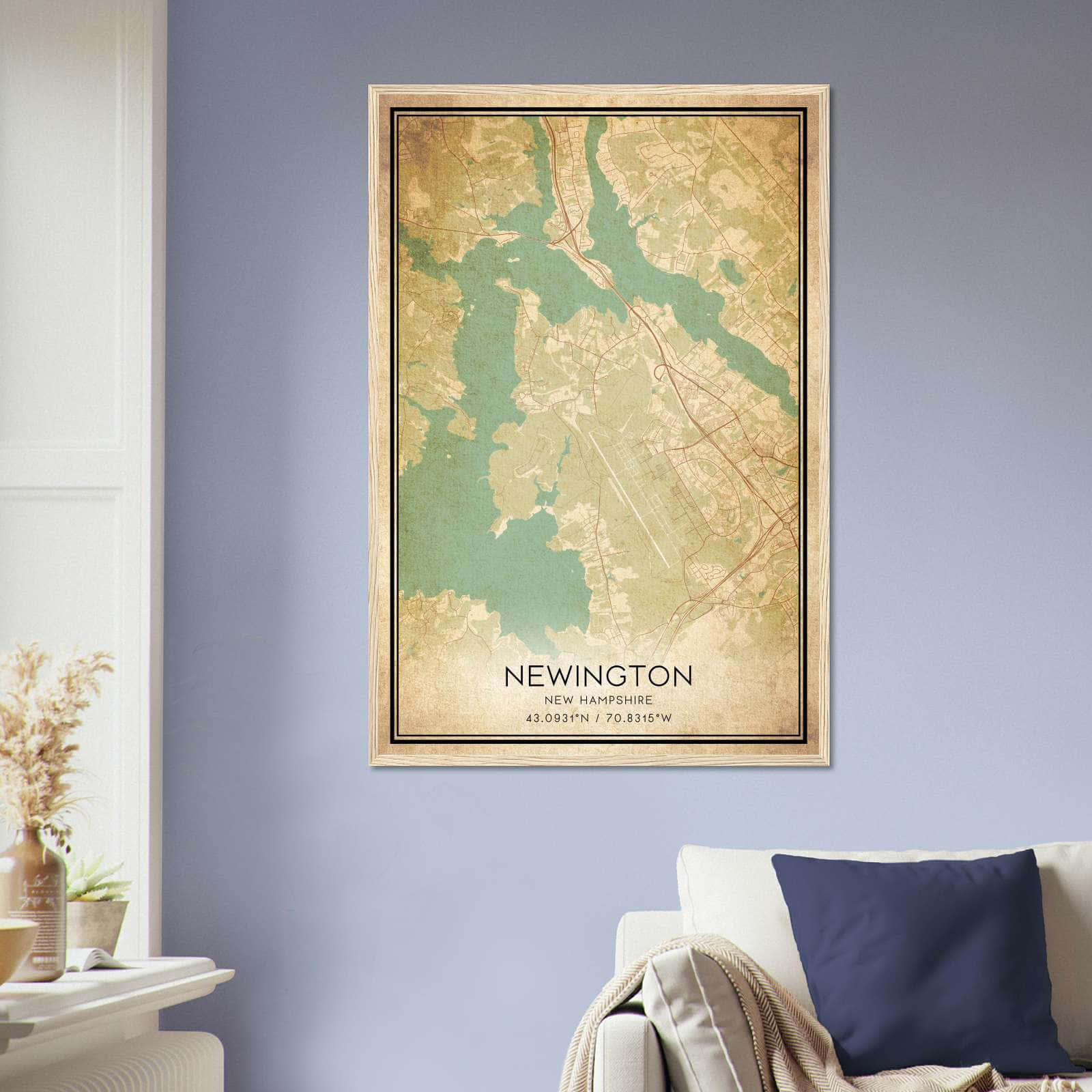 Vintage Newington New Hampshire Map Poster, Newington NH City Road Wall Art Print