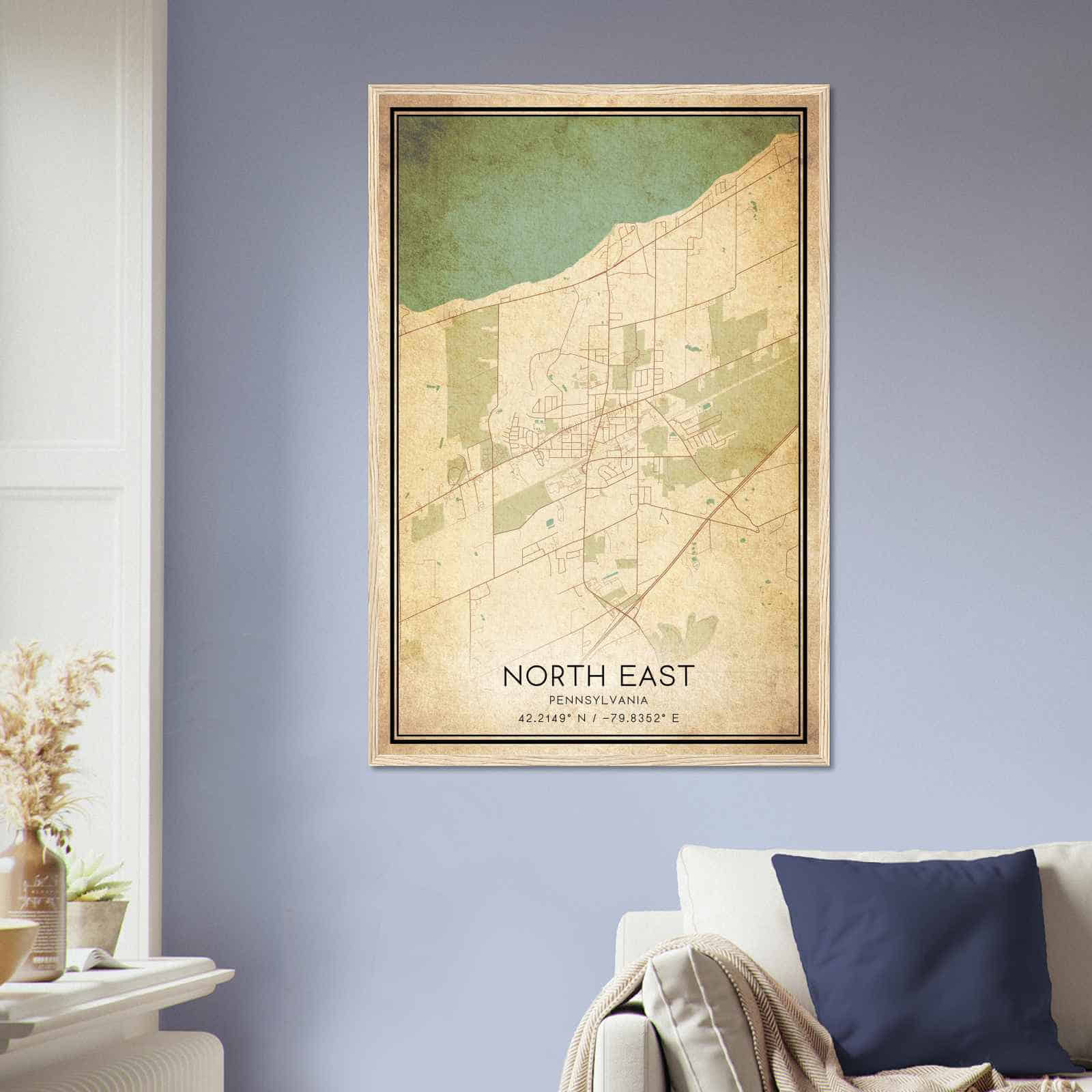 Transform your home decor with this stunning Vintage North East Map Poster. This high-quality paper print features a detailed street map of North East, making it a perfect addition to your modern home decor collection. Whether you’re born in North East or a visitor to the city, this map poster is a great way to explore and navigate the city.
