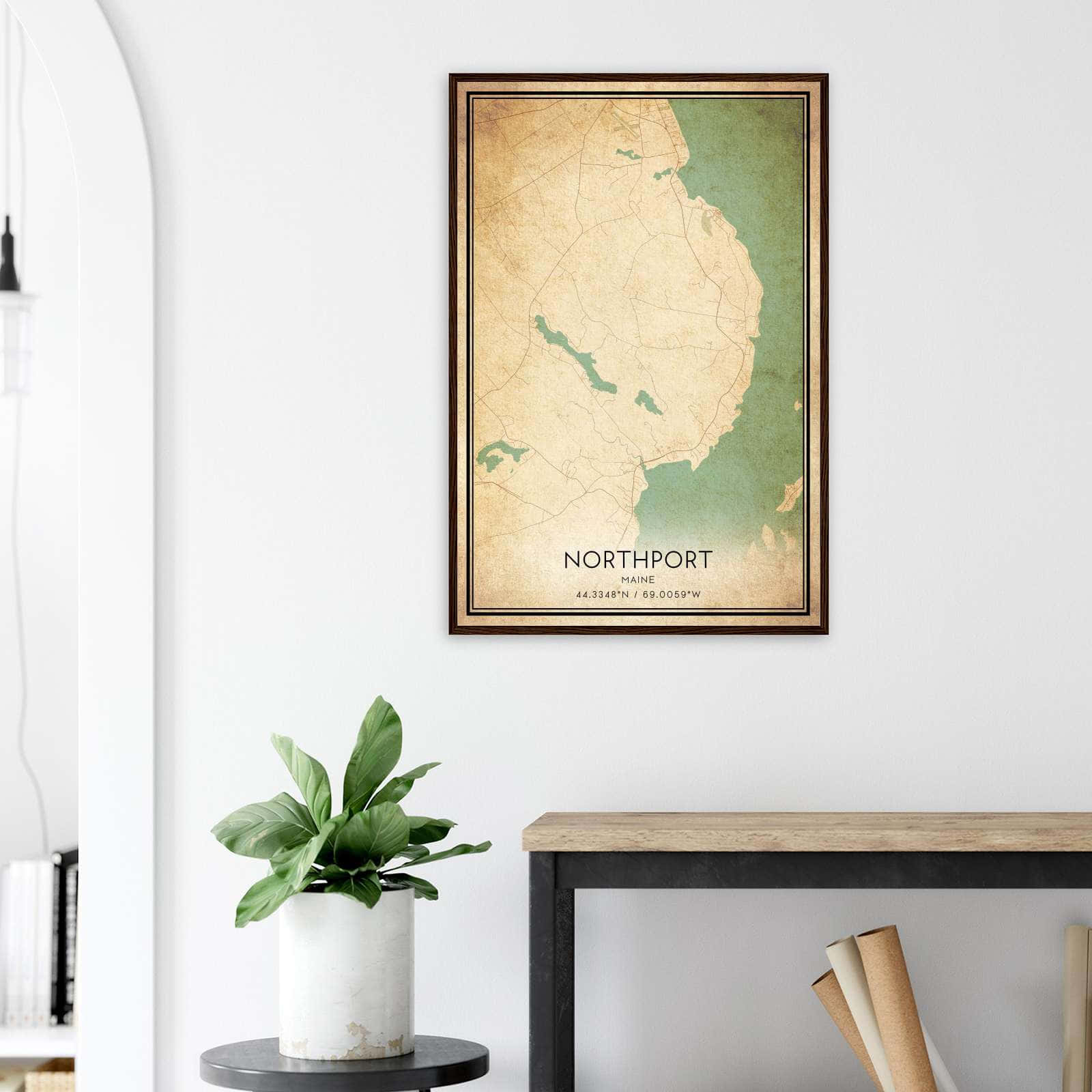 Vintage Northport Maine Map Poster, Northport ME City Road Wall Art Print