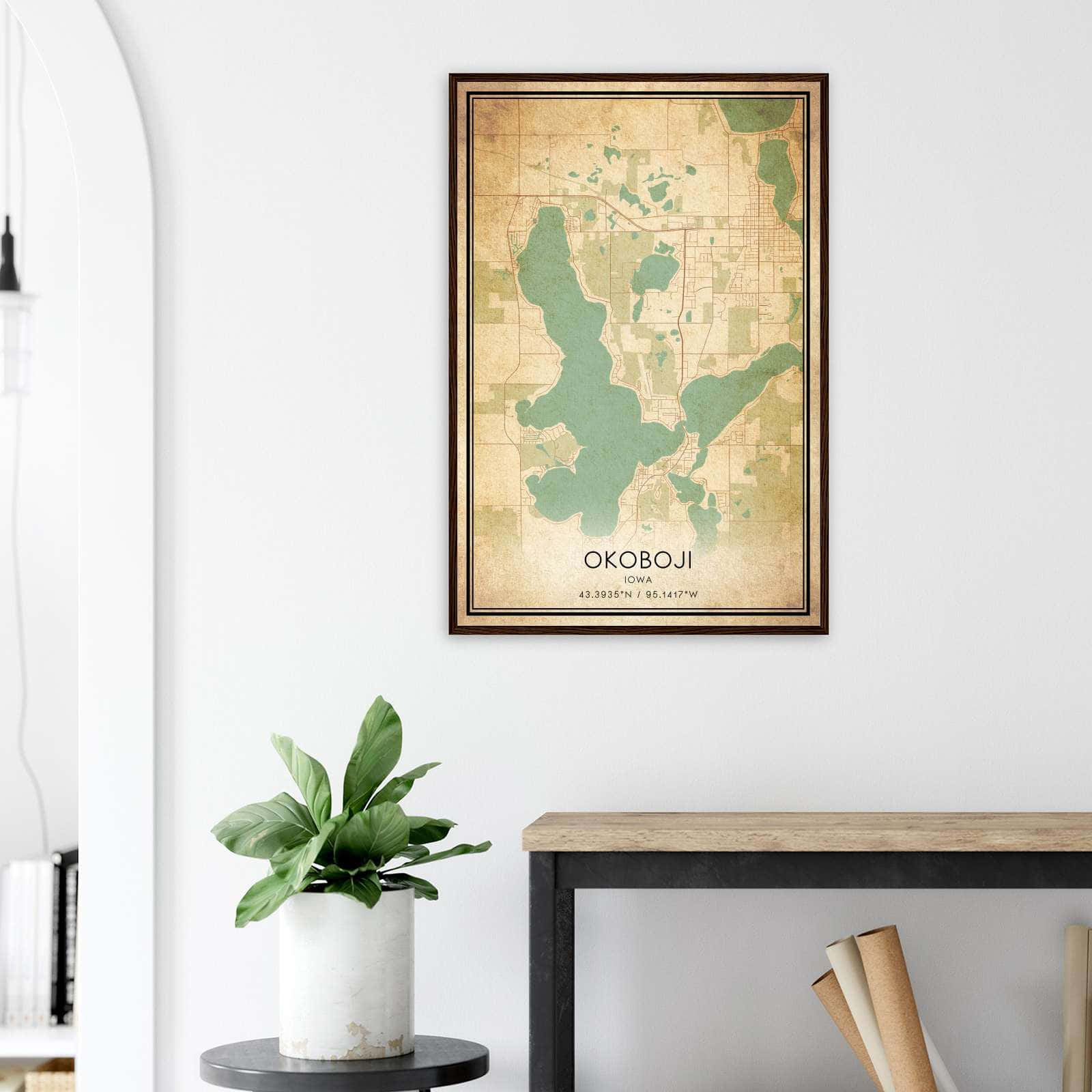 Transform your home decor with this stunning Vintage Okoboji Map Poster. This high-quality paper print features a detailed street map of Okoboji, making it a perfect addition to your modern home decor collection. Whether you’re born in Okoboji or a visitor to the city, this map poster is a great way to explore and navigate the city.