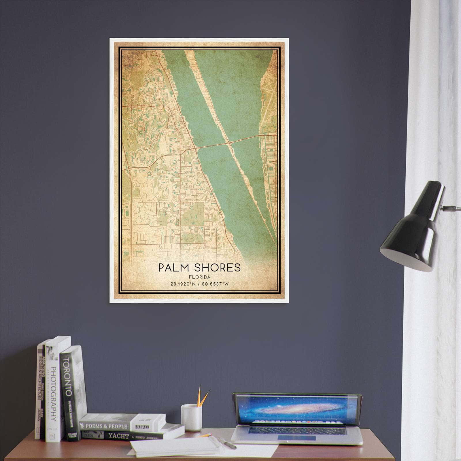 Get this Vintage Palm Shores Map Poster today and add a unique touch to your living space!