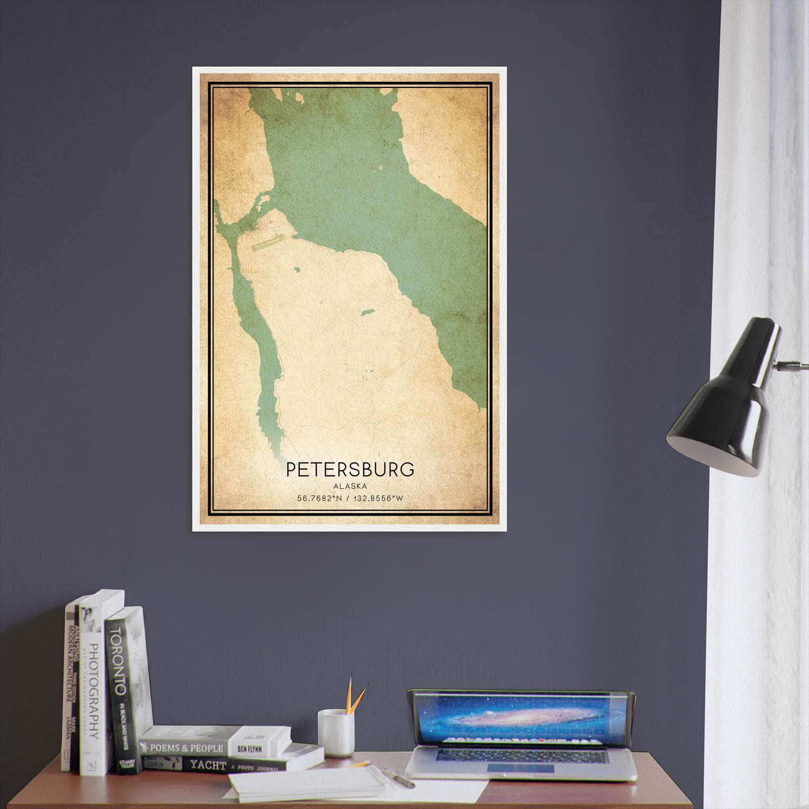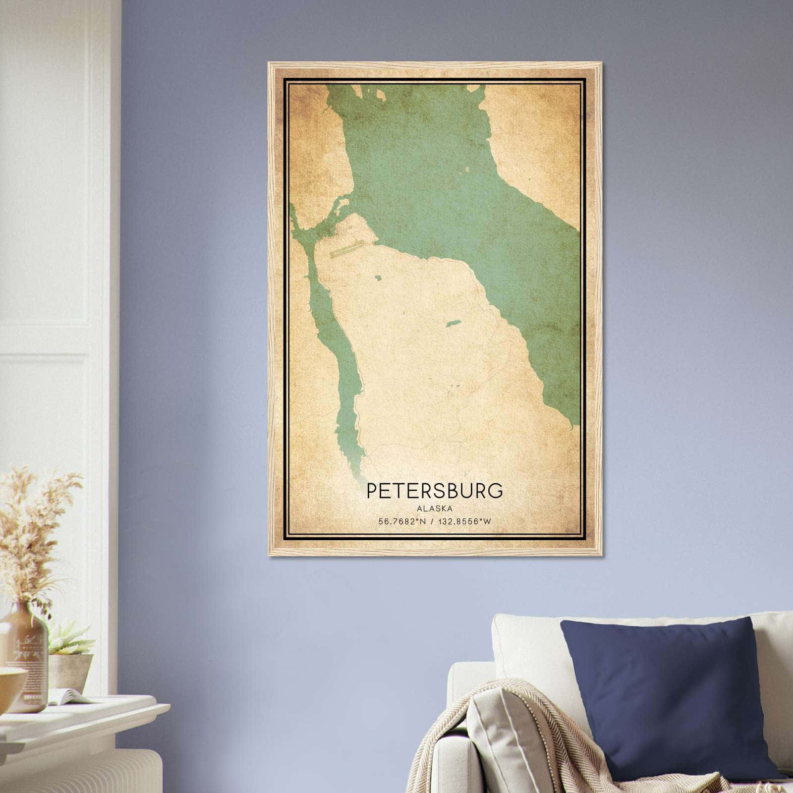 Vintage Petersburg Alaska Map Poster, Petersburg AK City Road Wall Art Print