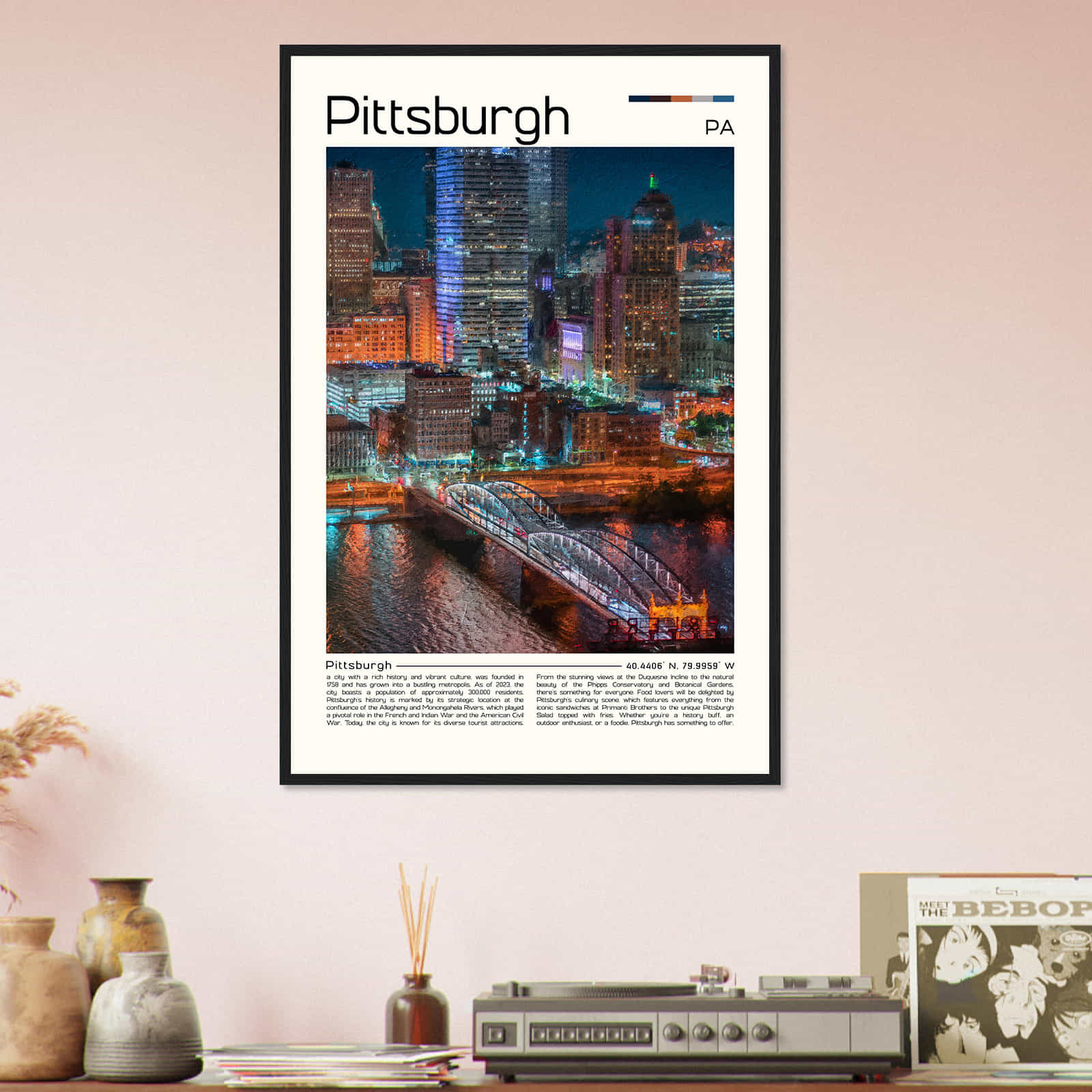 This vintage wall art print is a perfect gift for anyone who loves Pittsburgh or is a fan of vintage home decor. Its intricate details and vibrant colors make it an eye-catching wall art piece that will elevate the aesthetic of any room in your home. Hang it in your living room, bedroom, or office for a touch of elegance and sophistication.