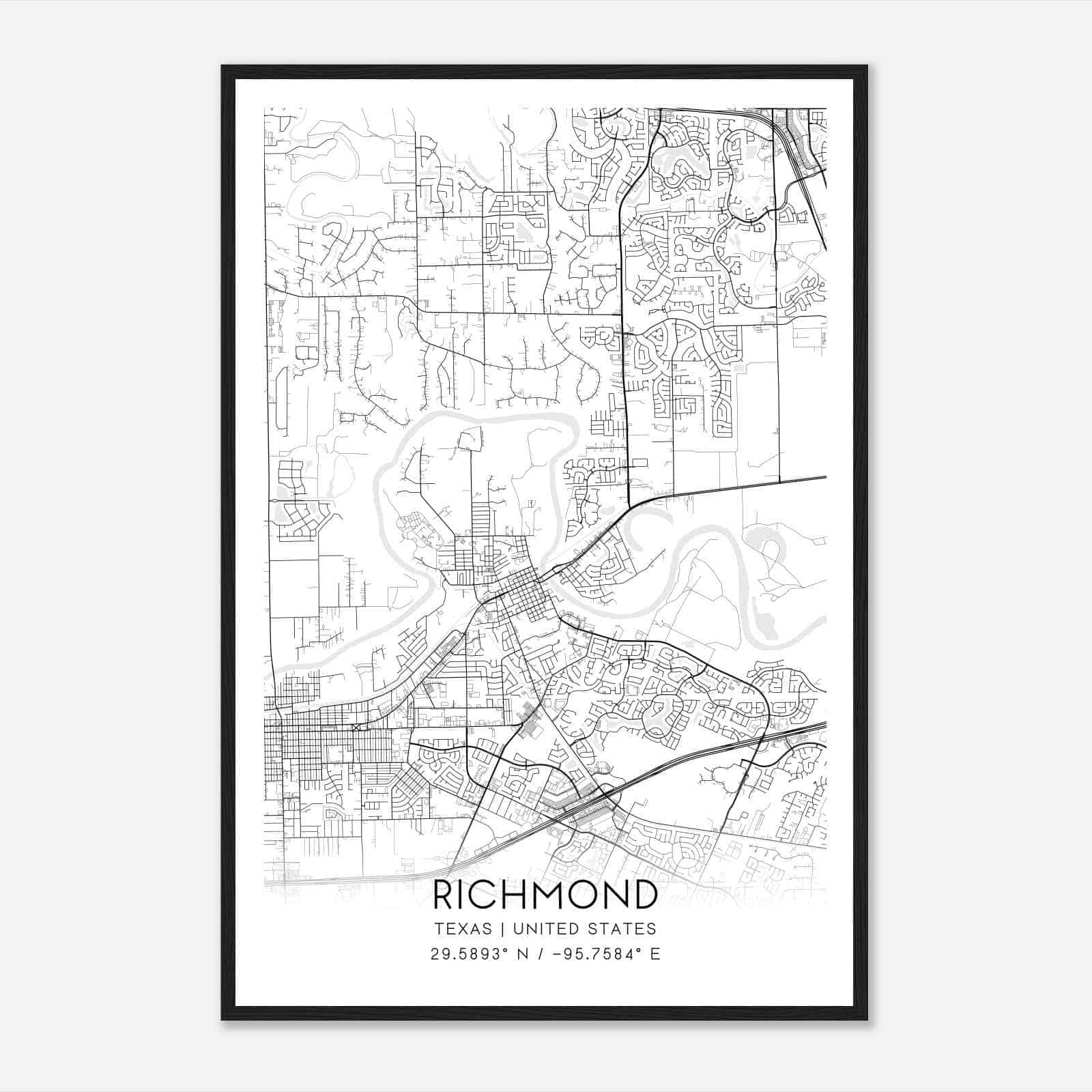 Vintage Richmond Texas Map Poster, Modern Home Decor Wall Art Print
