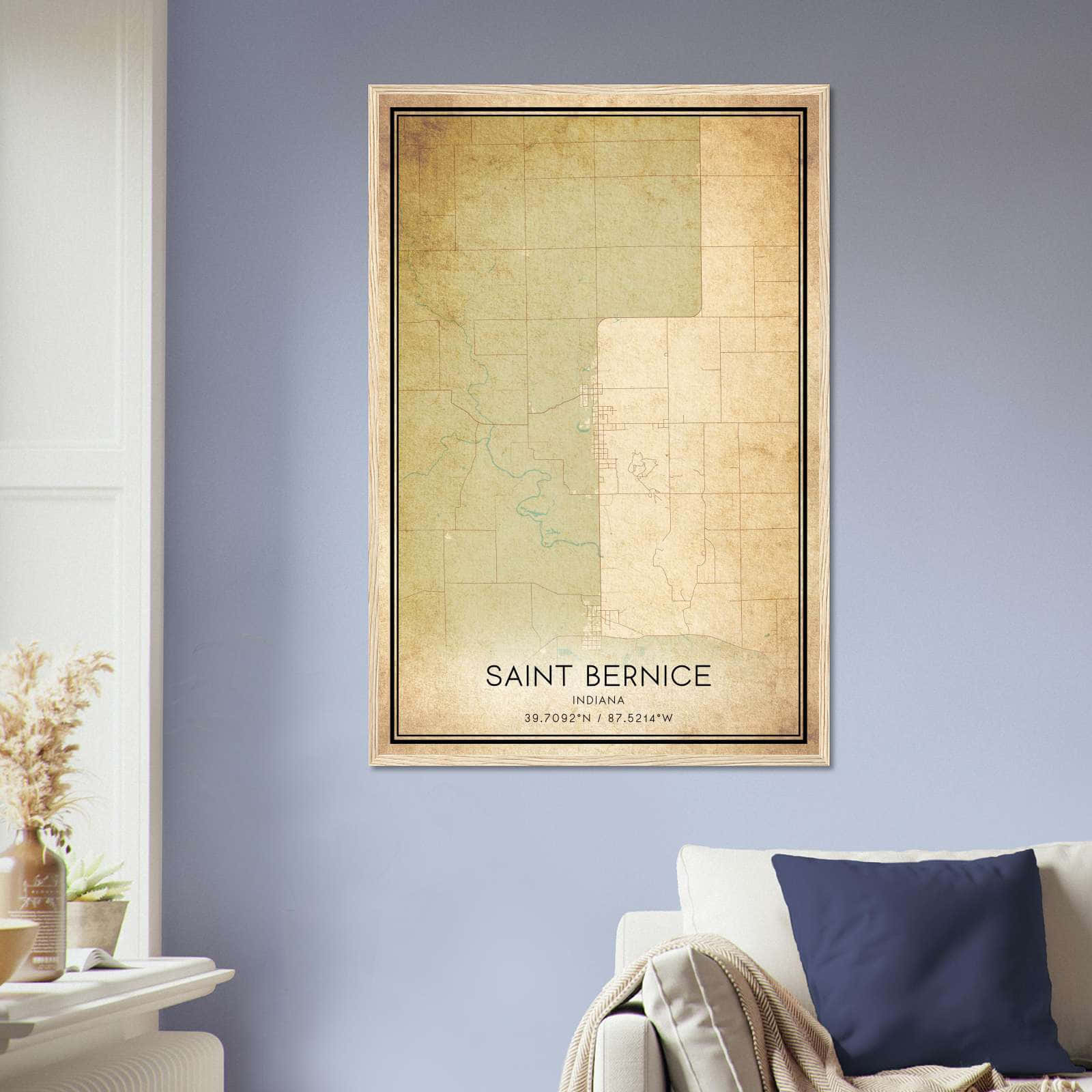 Get this Vintage Saint Bernice Map Poster today and add a unique touch to your living space!
