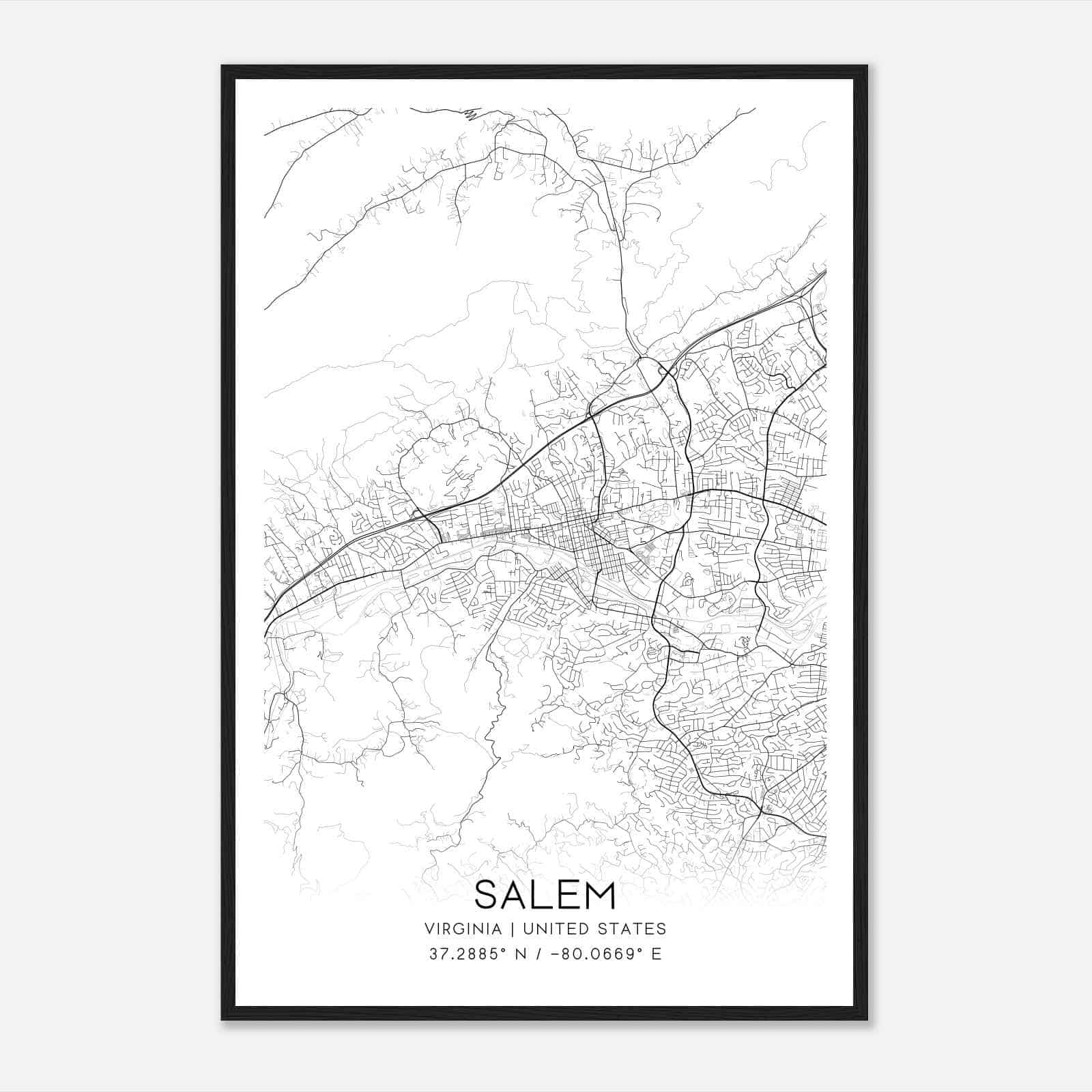 Vintage Salem Virginia Map Poster, Modern Home Decor Wall Art Print