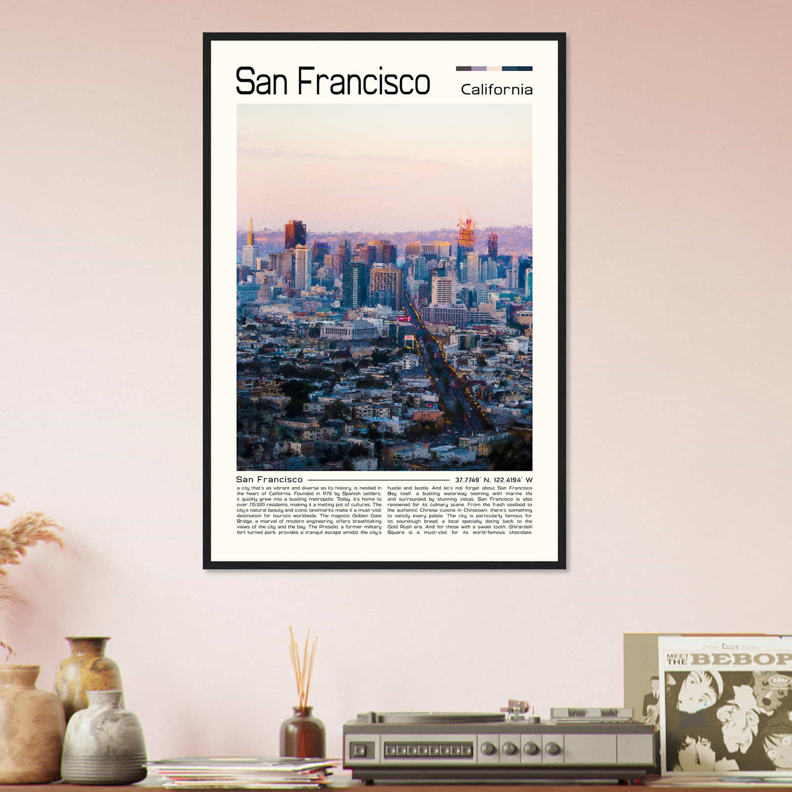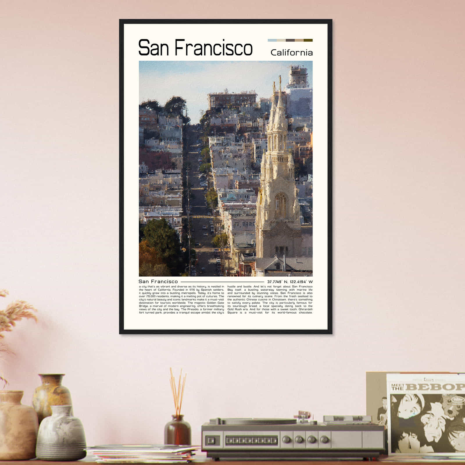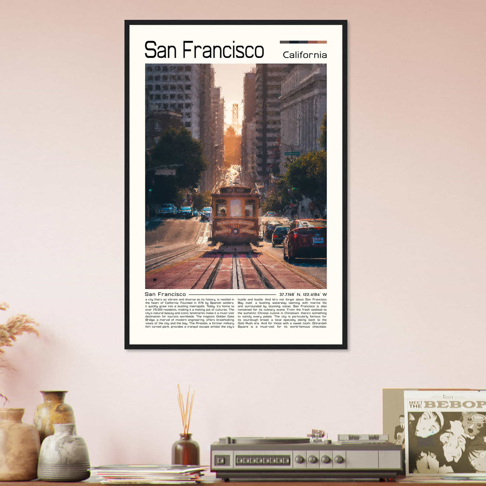 This vintage wall art print is a perfect gift for anyone who loves San Francisco or is a fan of vintage home decor. Its intricate details and vibrant colors make it an eye-catching wall art piece that will elevate the aesthetic of any room in your home. Hang it in your living room, bedroom, or office for a touch of elegance and sophistication.