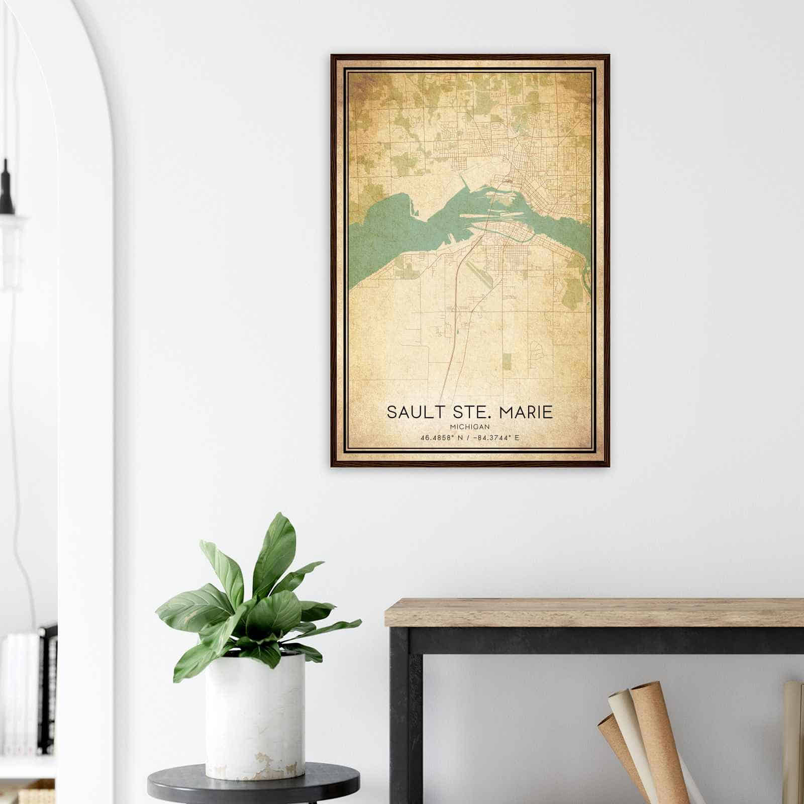 Get this Vintage Sault Ste. Marie Map Poster today and add a unique touch to your living space!