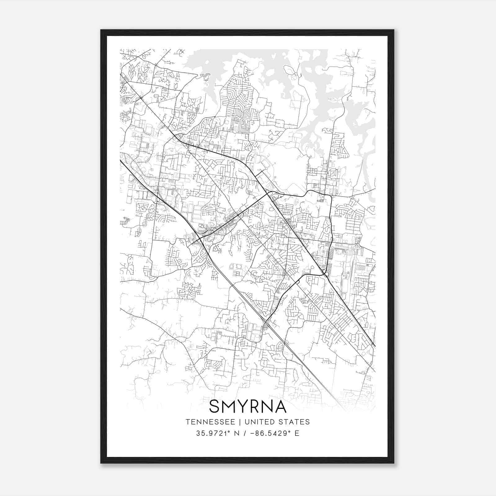 Vintage Smyrna Tennessee Map Poster, Modern Home Decor Wall Art Print