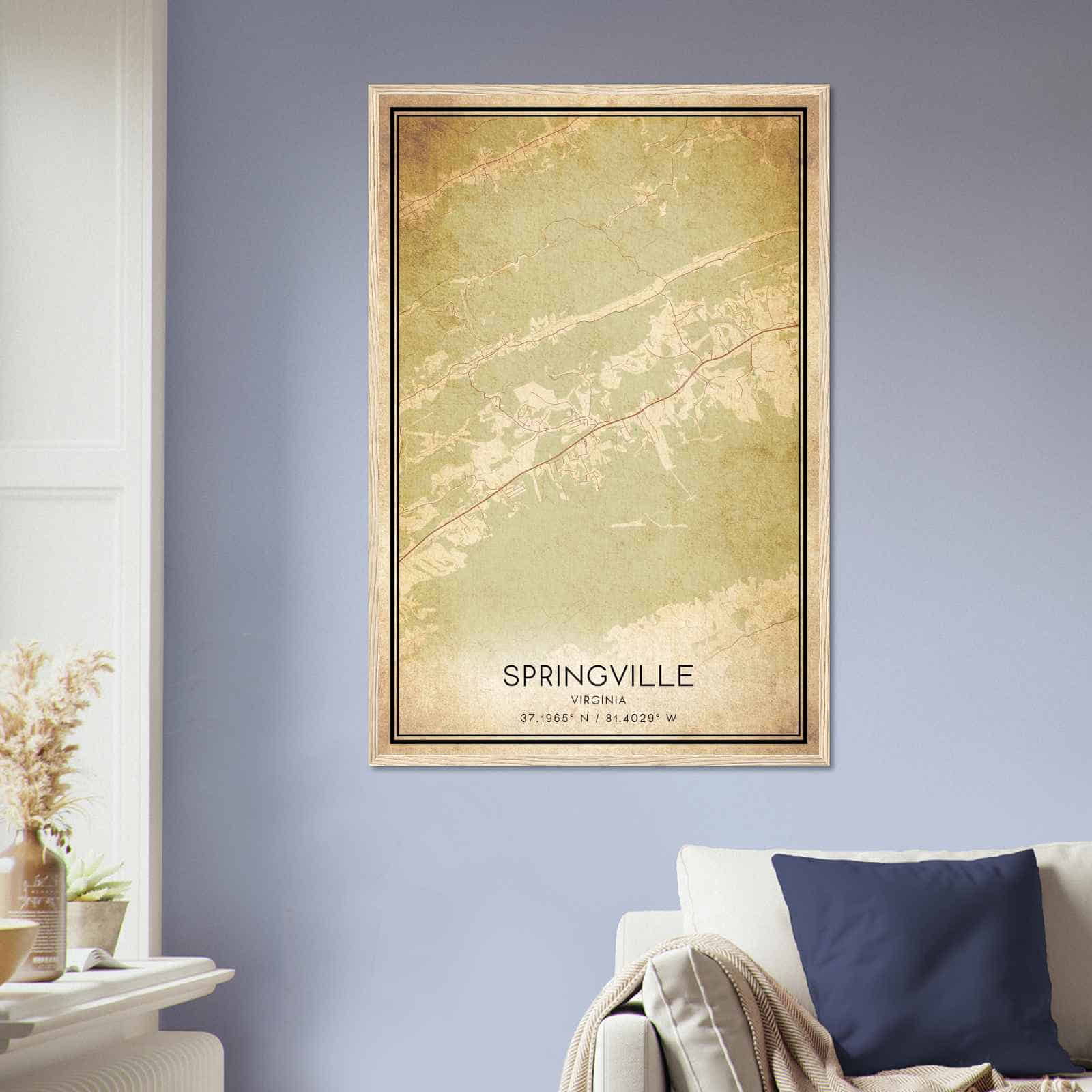 Vintage Springville Virginia Map Poster, Springville VA City Road Wall Art Print