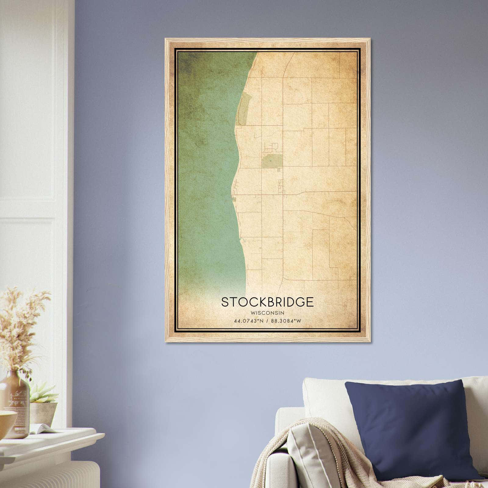 Vintage Stockbridge Wisconsin Map Poster, Stockbridge WI City Road Wall Art Print
