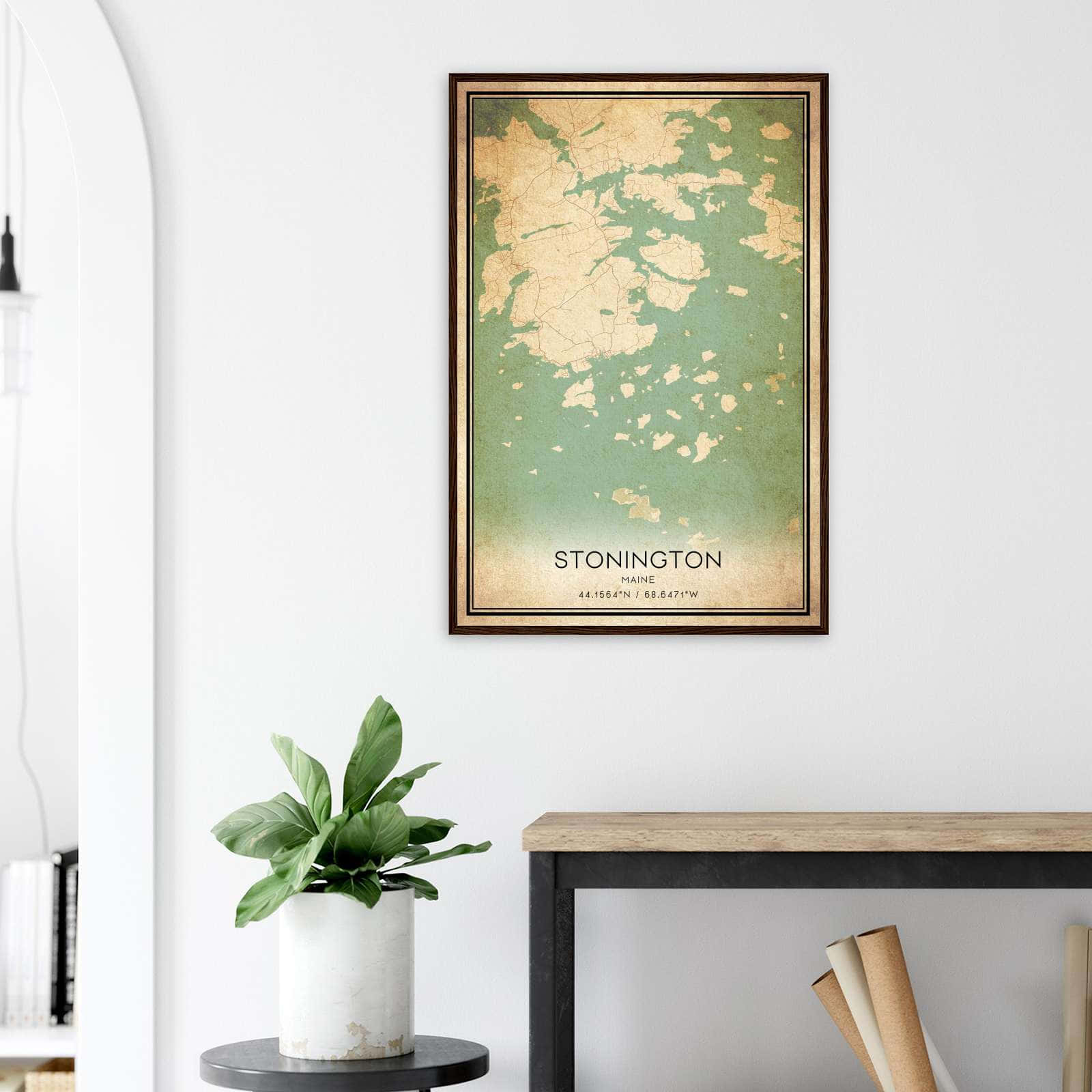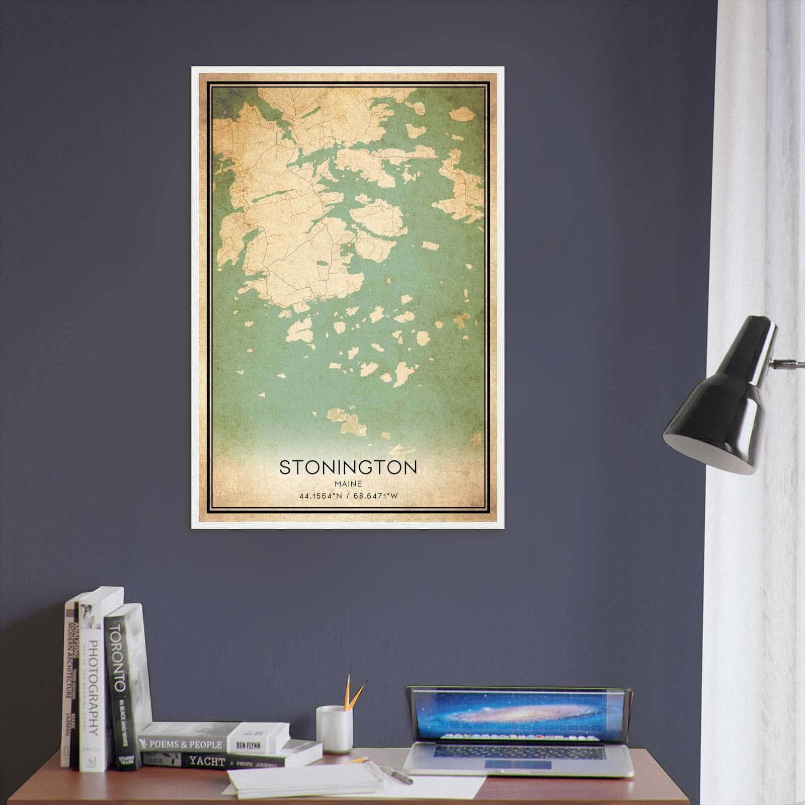 Vintage Stonington Maine Map Poster, Stonington ME City Road Wall Art Print