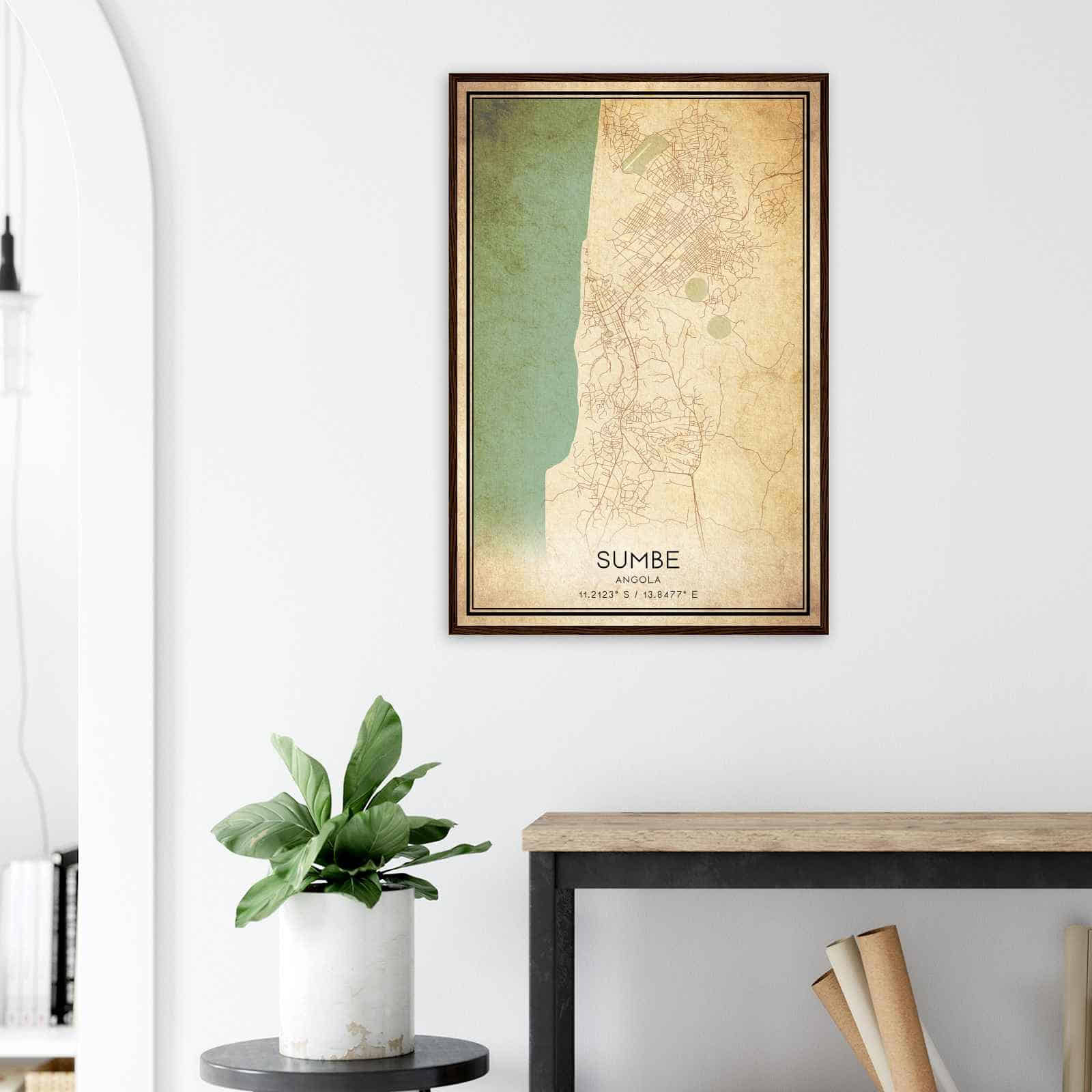 Transform your home decor with this stunning Vintage Sumbe Map Poster. This high-quality paper print features a detailed street map of Sumbe, making it a perfect addition to your modern home decor collection. Whether you’re born in Sumbe or a visitor to the city, this map poster is a great way to explore the city.