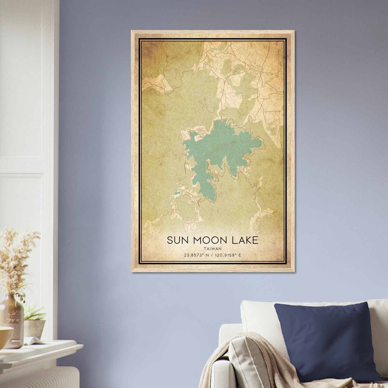 Get this Vintage Sun Moon Lake Map Poster today and add a unique touch to your living space!