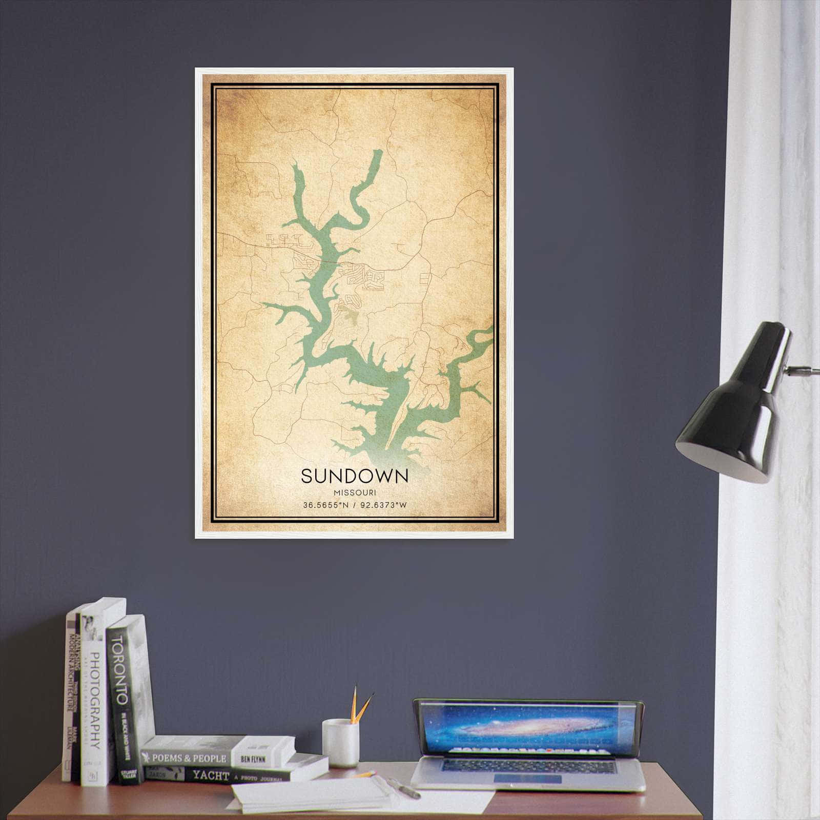 Vintage Sundown Missouri Map Poster, Sundown MO City Road Wall Art Print