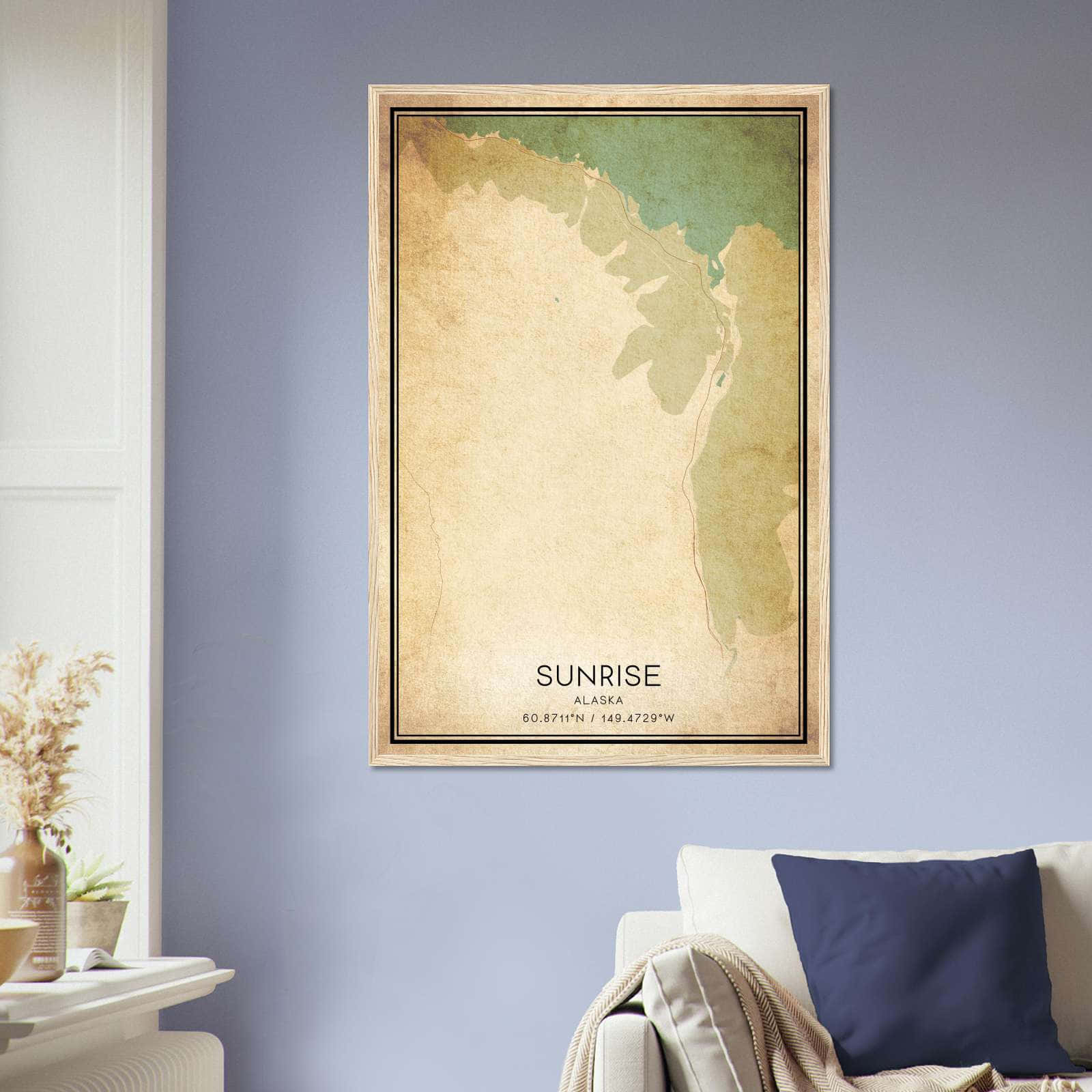 Get this Vintage Sunrise Map Poster today and add a unique touch to your living space!