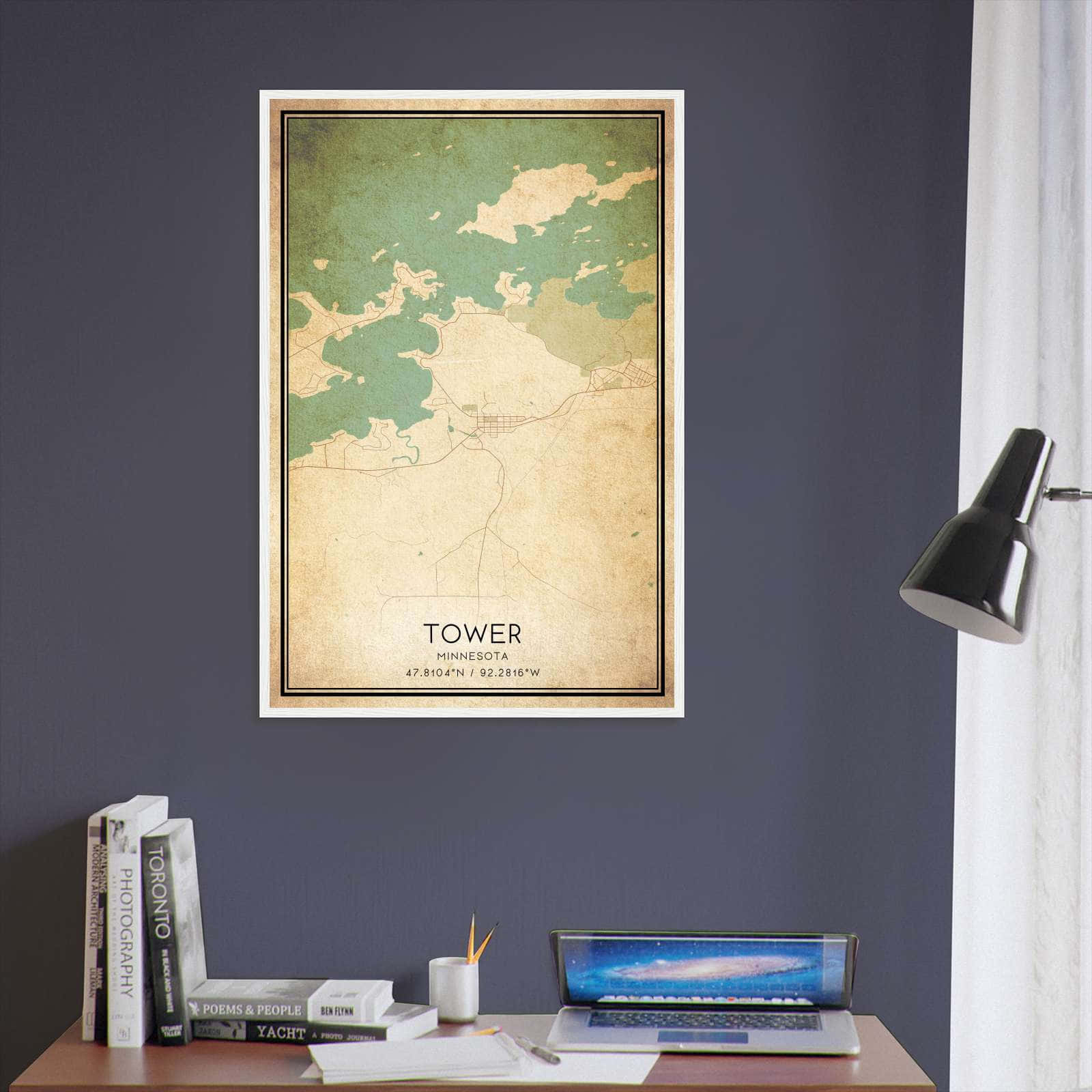 Transform your home decor with this stunning Vintage Tower Map Poster. This high-quality paper print features a detailed street map of Tower, making it a perfect addition to your modern home decor collection. Whether you’re born in Tower or a visitor to the city, this map poster is a great way to explore and navigate the city.