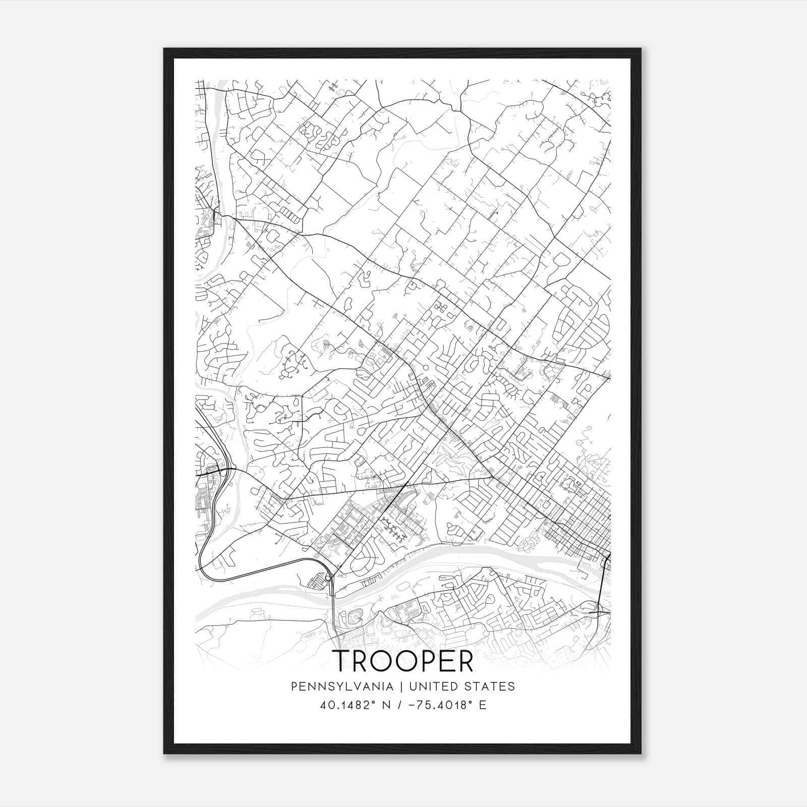 Transform your home decor with this stunning Vintage Trooper Map Poster. This high-quality paper print features a detailed street map of Trooper, making it a perfect addition to your modern home decor collection. Whether you’re born in Trooper or a visitor to the city, this map poster is a great way to explore and navigate the city.