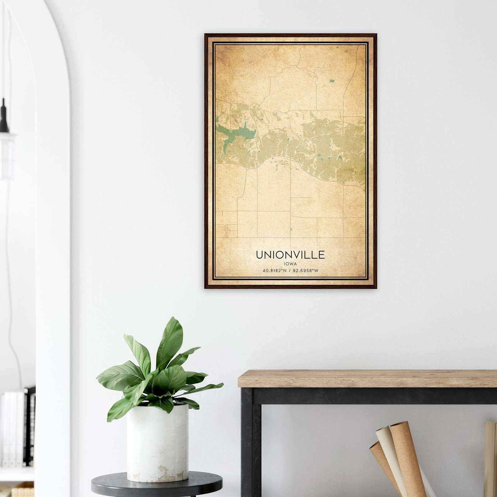 Vintage Unionville Iowa Map Poster, Unionville IA City Road Wall Art Print