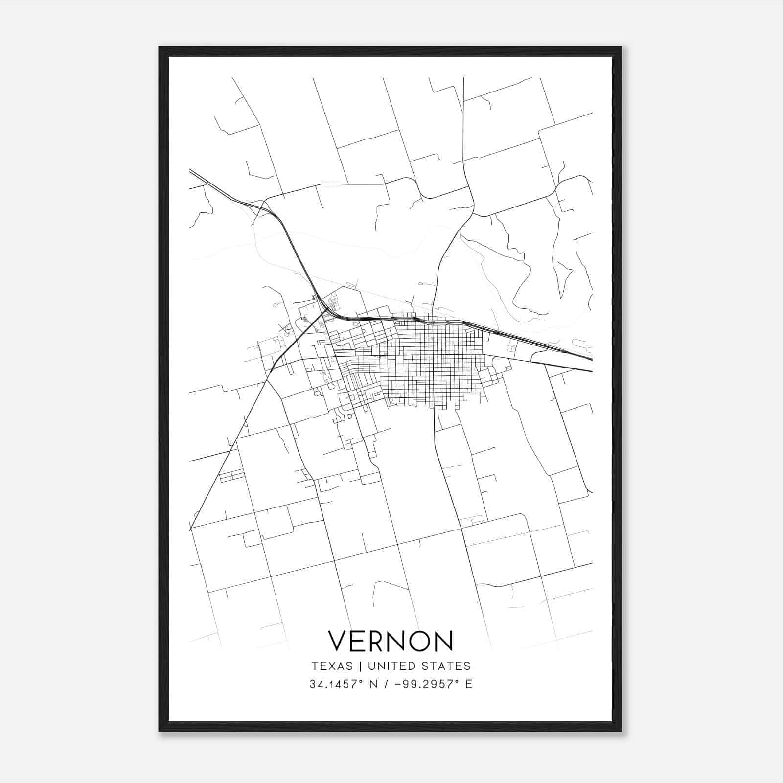 Vintage Vernon Texas Map Poster, Modern Home Decor Wall Art Print