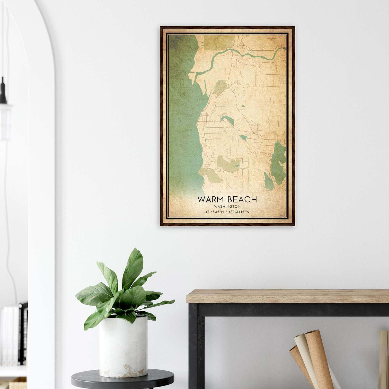 Transform your home decor with this stunning Vintage Warm Beach Map Poster. This high-quality paper print features a detailed street map of Warm Beach, making it a perfect addition to your modern home decor collection. Whether you’re born in Warm Beach or a visitor to the city, this map poster is a great way to explore and navigate the city.