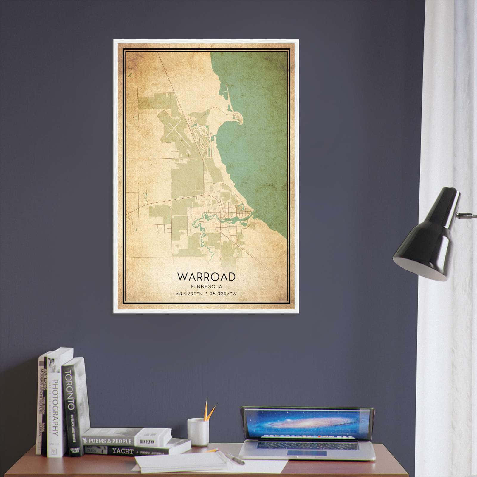 Get this Vintage Warroad Map Poster today and add a unique touch to your living space!